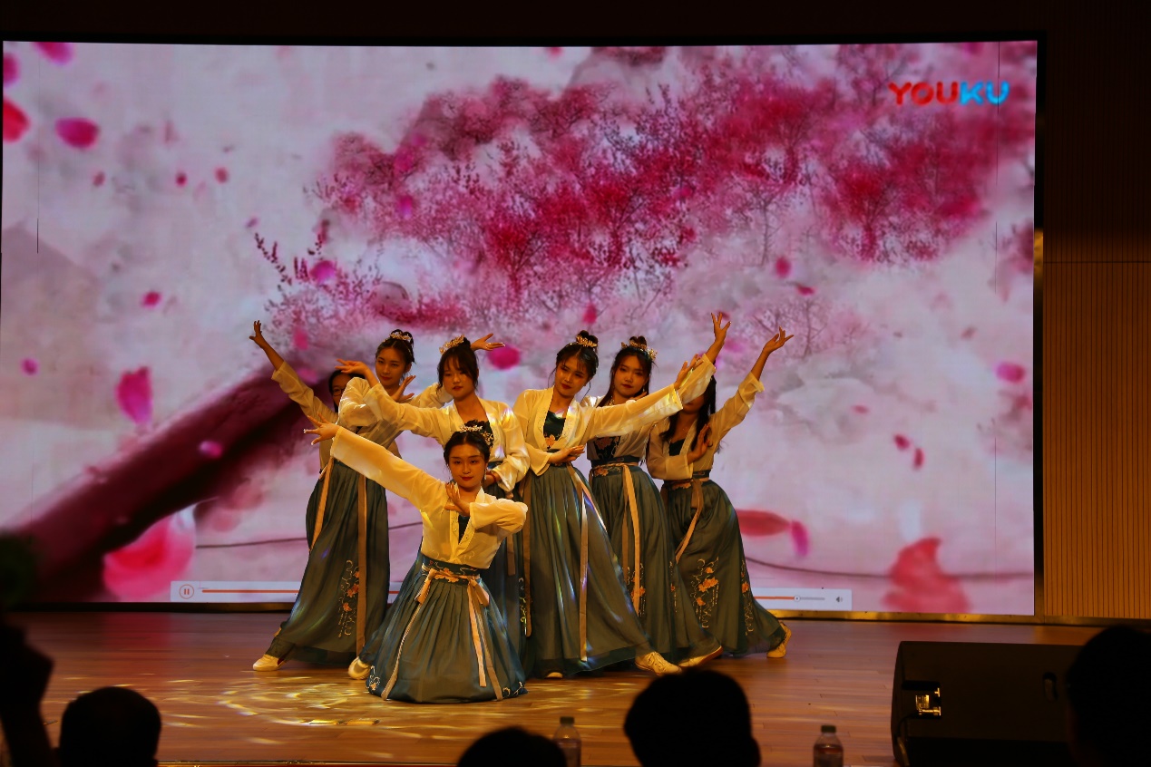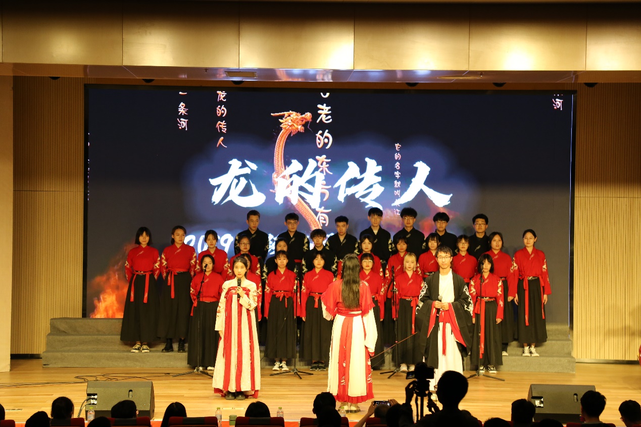 演出共分为《忆峥嵘岁月,赞百年辉煌》、《扬青春风帆,奏时代华章》、《续精神血脉,绘宏伟蓝图》三个篇章。朗诵《穿越时空的对话》,展示出建党百年的艰难历程和英雄人物,表达出爱党爱国的激昂豪情;舞蹈《桡梨煎雪》优美曼妙,舞姿动人,蕴含着古典文化韵味;三句半《众志成� 齐心抗疫》,幽默诙谐,集中体现了中国人民万众一心、同心抗疫的团结伟力,以及党和政府全民动员、联防联控打赢疫情防控阻击战的胜利;合唱《龙的传人》设计新颖,曲调铿锵,传递出强烈的爱国情怀与�族精神,引起现场观众的强烈共鸣;合唱《灯火里的中国》展现万家灯火的繁华似锦和安详宁静,祖国人民的奋发图强和生生不息,具强烈的艺术感染力�