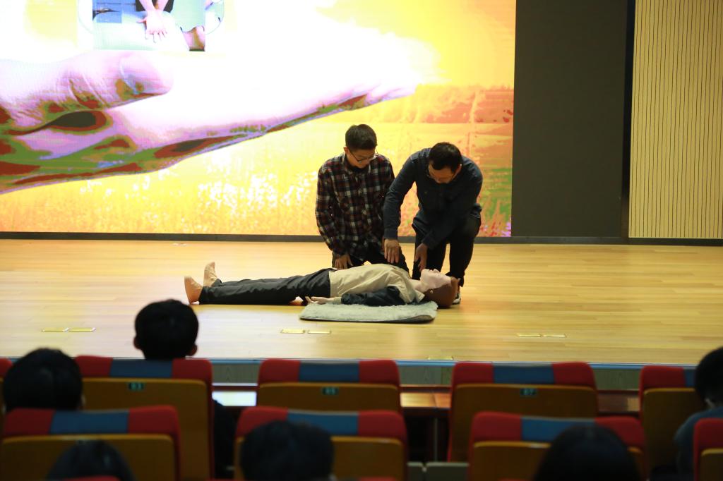 最后,孙丽随行专业医师示范了心肺复苏法,生动形象地传�了急救技能,随后邀请志愿者同学上台亲身体验实施心肺复苏术,亲身感受便于同学们掌握心肺复苏法的操作技能�