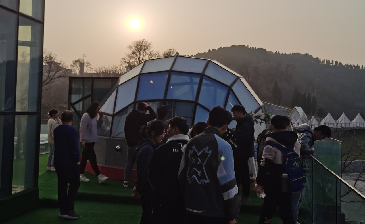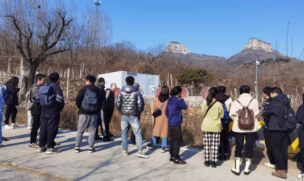 � 后调研期间,在田延峰书记的带领下,师生一行先后考察了官营村果蔬�发市场、猕猴桃采摘园,樱桃产业种植园、地瓜粉皮产业扶贫项目、党支部领办合作社项目。接下来大家到无公害蜜薯采摘基地开展农事体验活动,期间同学们就乡村振兴、产业扶贫和现代农业等问题和村委班子成员、种植农户、村民进行了深入访谈。随后一行人来到若谷山居调研,若谷山居地处四角城村,毗邻七星台景区,海拔600余米,地理位置优越、自然环境优美。若谷山居民宿为全景透明玻璃设计,以砖头、木头、石头三种元素为主要装修风格,于简洁明快中体现自然之美,集餐饮、住宿、会议、茶艺于一体,可容纳三百人同时住宿和就餐,�济南市规模最大也是最成功的精品民宿之一�