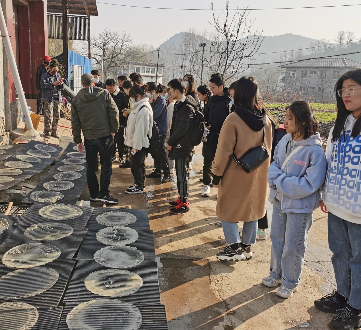 2021�11�16日,农村区域发展乡村振兴实验班同学在院党委副书记高峰,专任教师齐永华、尹双明带领下赴章丘垛庄镇官营村开展实调研活动。官营村联合党总支书记赵荣厚、四角城村党支部书记田延峰陪同调研�