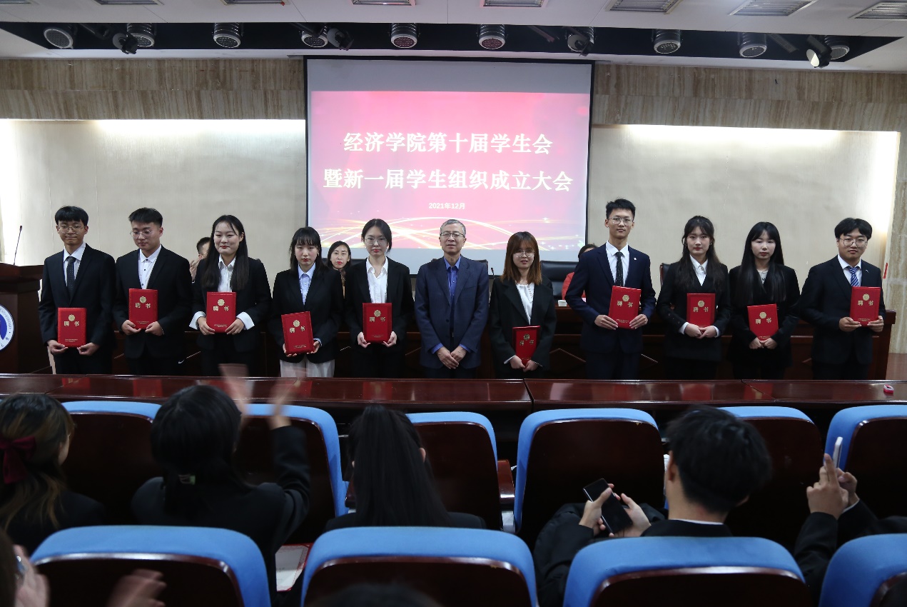 (通讯员:王涵 刘毓� 张艺� 舒展)为继承发扬经济学院学生会优良作风,总结工作经验,推进新一届学生会工作顺利开展,12�9日下午,经济学院第十届学生会暨新一届学生组织成立大会于圣井校区敏行楼举行。经济学院党委副书记高峰、学工办主任裴斐、团委书记付雯、党委专职组织员王琦、第九届学生会主席曲永昶和第十届学生会及各学生组织全体成员参加会议,会议由裴斐主持�