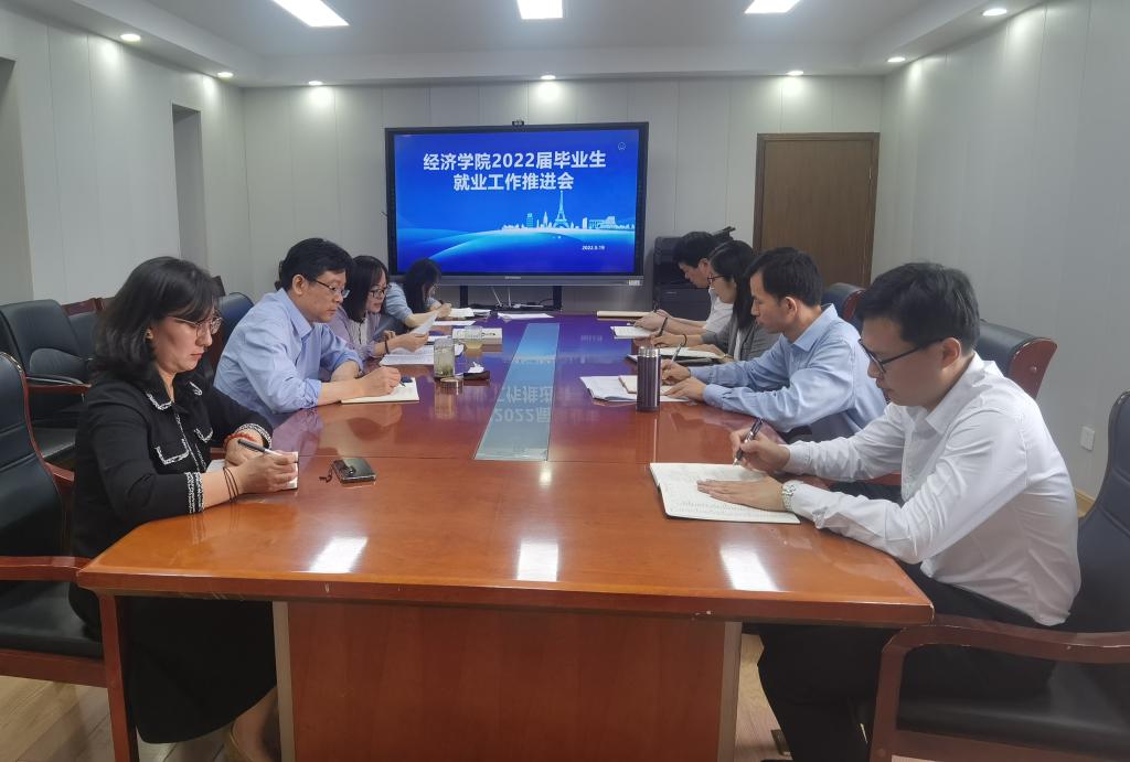 (通讯� 李冰封)为贯彻落实《山东财经大学关于进一步做�2022届毕业生就业工作的通知》,帮助毕业生树立正确的就业观、择业观,切实解决毕业生求职�的实际问题,进一步推进学院就业工作,5�19日,经济学院召开2022届毕业生就业工作推进会,党委书记姜伟、院长谢申祥、党委副书记李冰封、陈静,副院崔宝敏、张明志,办公室主任马祥振、行政秘书王元、本科毕业班辅导员王琦参加会议�