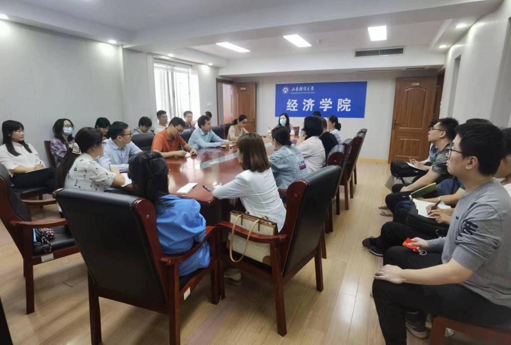 8�29日下午,经济学院在舜耕校区办公楼1208�议室召开近五年新进博士教师座谈会。学校副校长兼经济学院院长谢申祥、经济学院副院长崔宝敏及2017年后入职�23位青年博士教师参加了本次座谈交�会。会议由谢申祥主持�