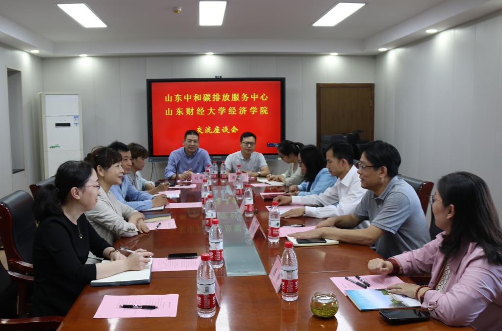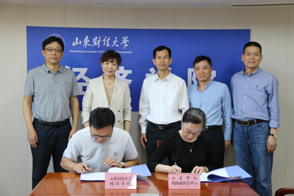 9�23日下午,山东财经大学经济学院与山东中和碳排放服务中心在舜耕校区办公楼1208会议室举行战合作签约仪式。山东财经大学党委委员、副校长、经济学院院长谢申祥,经济学院党委书记姜伟,党委副书记李冰封、陈静,副院长崔宝敏、张明志,经济学院教授、博士生导师刘华军,山东中和碳排放服务中心总经理郑静等出席活动。会议由姜伟主持�