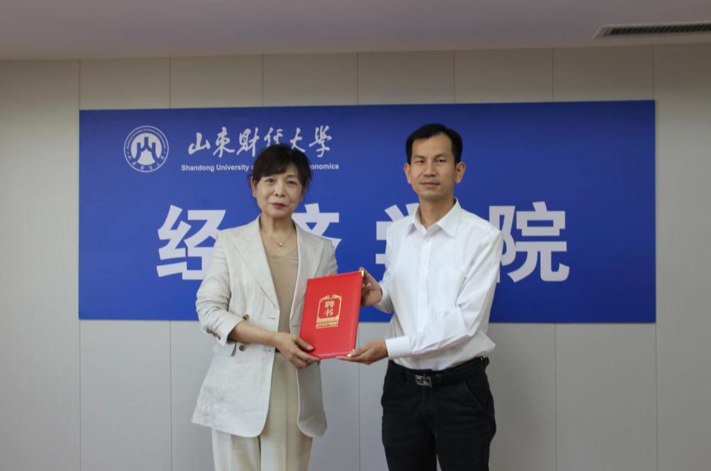 谢申祥副校长向郑静总经理颁发山东财经大学经学院客座教授聘�
