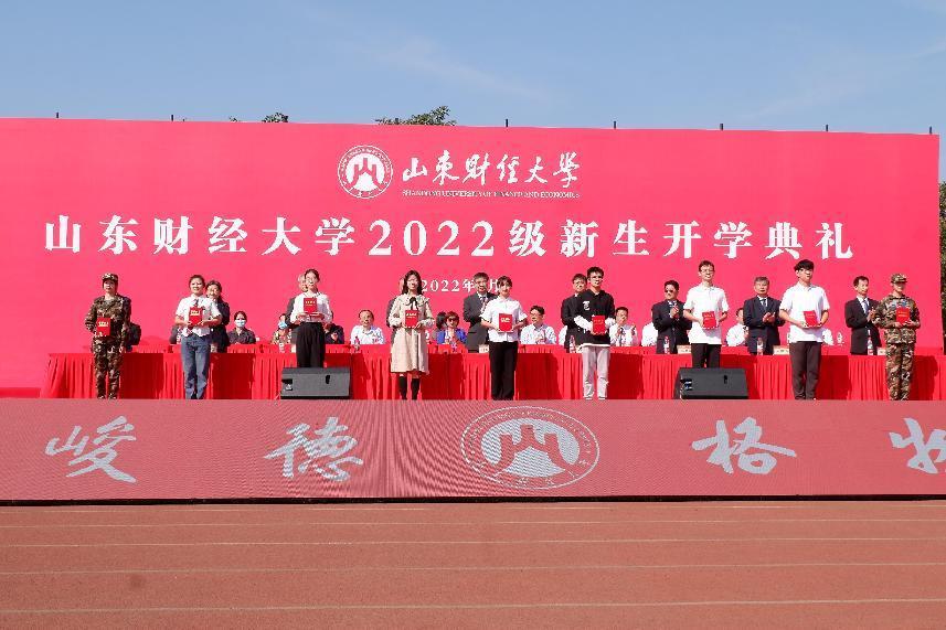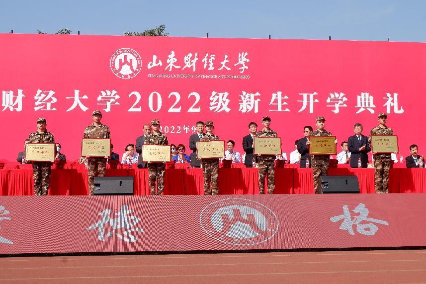 9�30日上午,山东财经大学2022级新生开学典礼暨国防教育总结大会在圣井校区举行。校党委学生工作部、学生工作处处长杨哲宣读《关于表�2022年国防教育先进集体、优秀军训学生、优秀教官的决定》。此次新生国防教育工作中,经济学院被评为“军训先进单位”,谭春光被评为“国防教育先进工作者”,何文骁、赵雅轩被评为“优秀志愿者”,恒源、王米奇等多名同学被评为“优秀军训学生”�