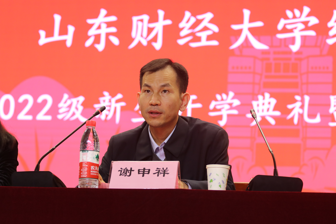 谢申祥对2022�371名新生顺利考取经济学院表示热烈的欢迎和衷心的祝贺,介绍学校建校70周年的历史变迁,学院发展历史、学科建设、教学团队、师资队伍、教学科研等,他指出,同学们在“两个一百年”的历史交汇期步入大学,是实现第一个百年目标的见证者和受益者,更将是实现第二个百年目标的建设者,必将担负起实现中华民族伟大复兴的中国梦的历史重任,向新生提出三点希望:一、胸怀鸿鹄之志,涵养家国情怀。要进一步树立远大理想,将爱国之情、报国之志融入中华民族伟大复兴梦中,同人民一起开拓,同祖国共同奋进,承续繁荣,造福中华;二、打牢学业根基,不负青春韶华。同学们应珍惜当下、不负韶华,永葆学习的热情,用知识和技能为自己锻造过硬本领,打牢学业根基,积蓄前进能量;三、锻造坚韧意志,呵护身心健康。互联网时代给大家同时带来了机遇与挑战,青年学子需要高扬主体自律,保持乐观心态,勇于直面挑战,怀揣坚强的意�力逢山开路、遇水搭桥,远离浮躁,超越自己,活好当下,才能保持人生的定力�