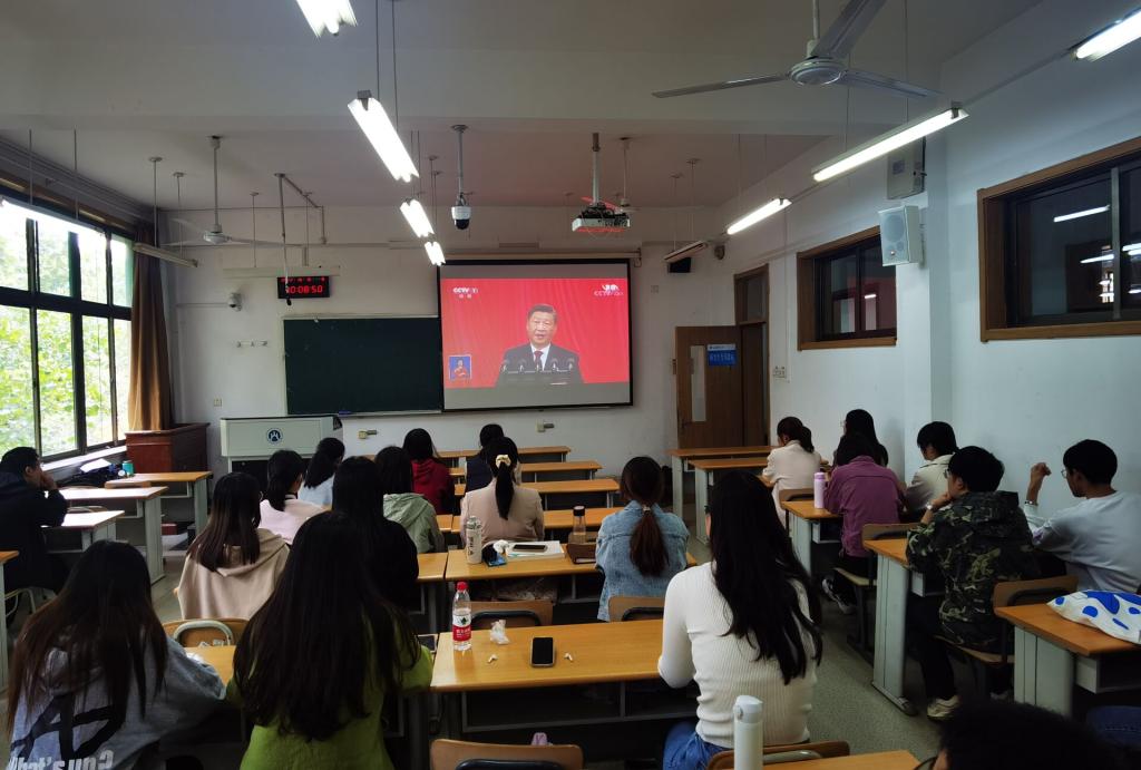 学院各级团干部、团员青年们相聚会议室、教室、宿舍内,热切关注大会进程,认真聆听、学习、热议习近平总书记的报告,分享观看心得体会,共同见证党的历史上这一重要时刻。全院研究生、本科生�44个班级团支部共组�1800余名学生观看,团支部覆盖率达100%,共�600余名学生发表在线讨论�