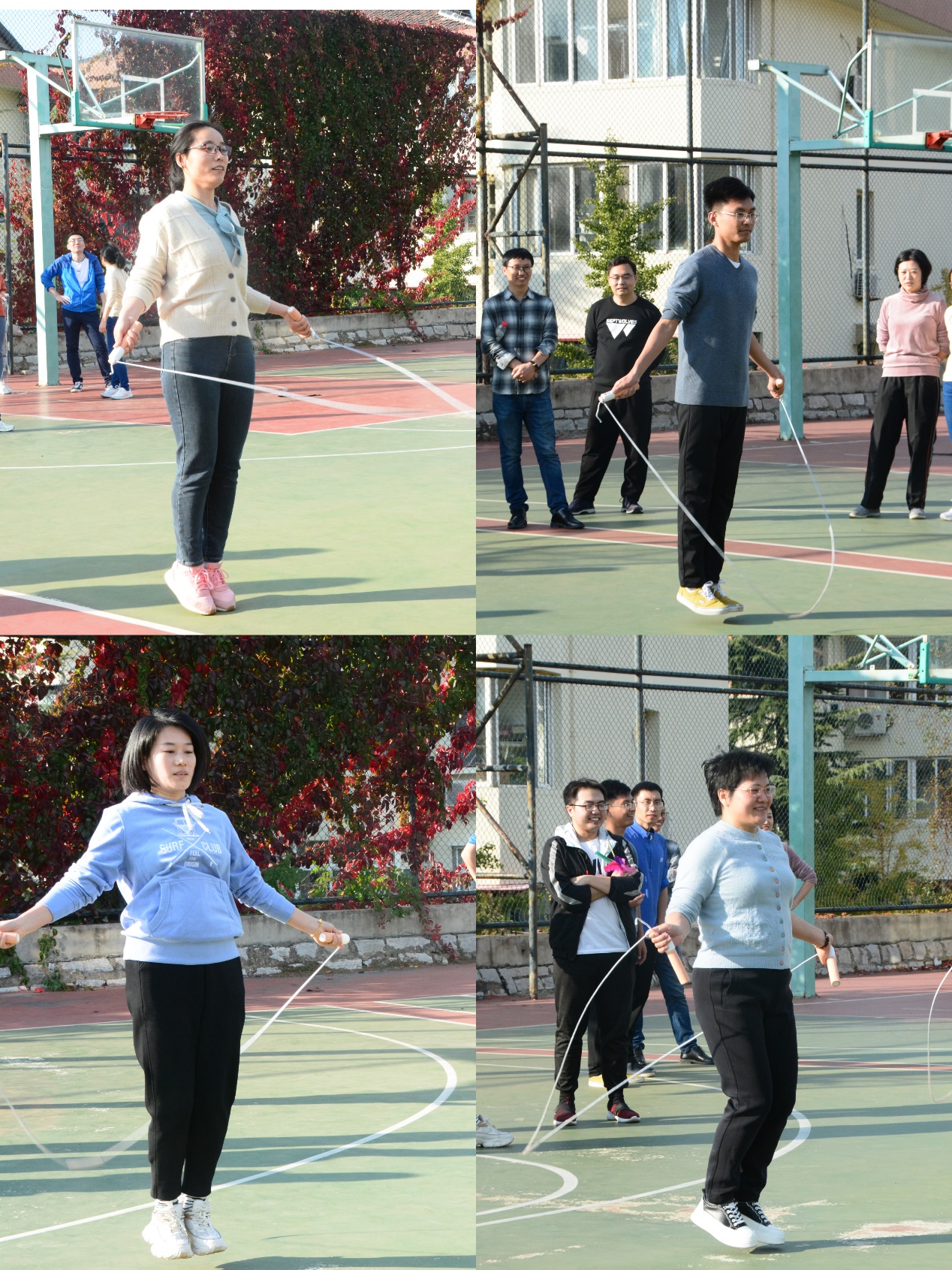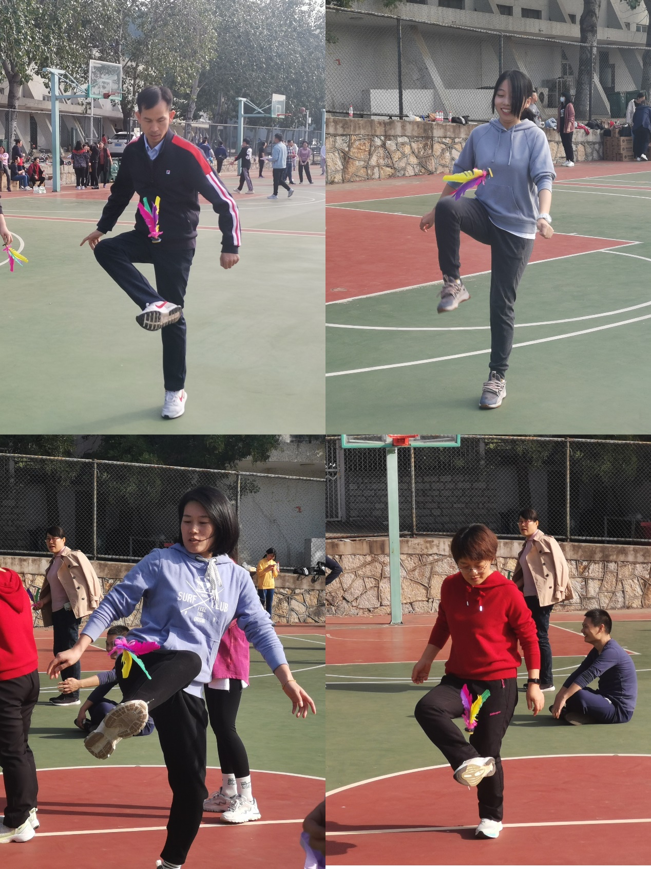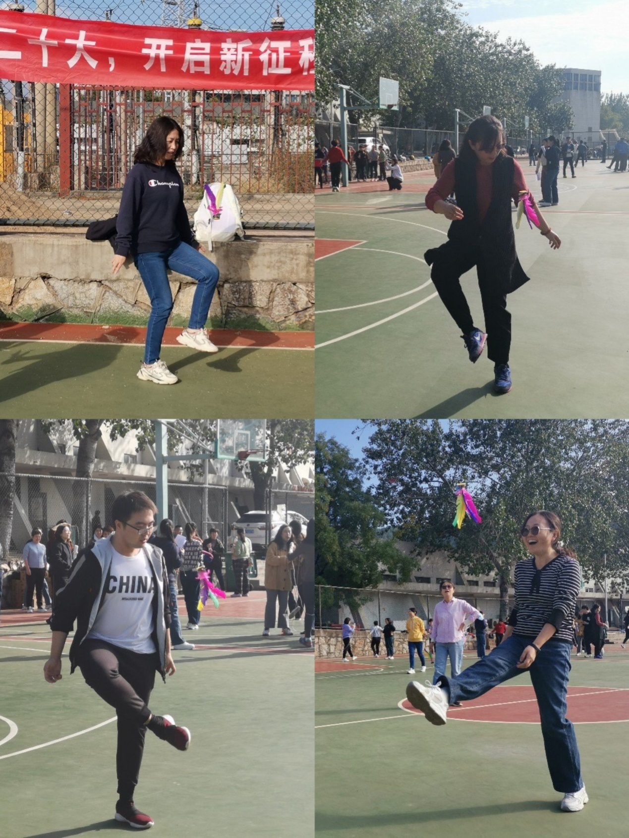 经济学院教职工趣味体育活动以“健步走”正式拉开序幕。随后,教职工们在篮球场参加趣味体育比赛。趣味体育比赛分个人赛和团体赛,共有踢毽子�跳绳和篮球投准三个项目。每个项目轻松有趣,集趣味性、竞技性、合作性于一体,充分展现了健康向上、奋勇拼搏和精诚合作的体育精神�