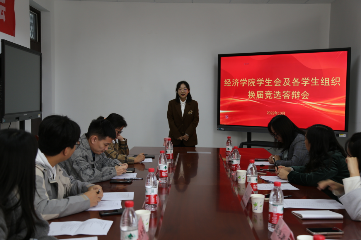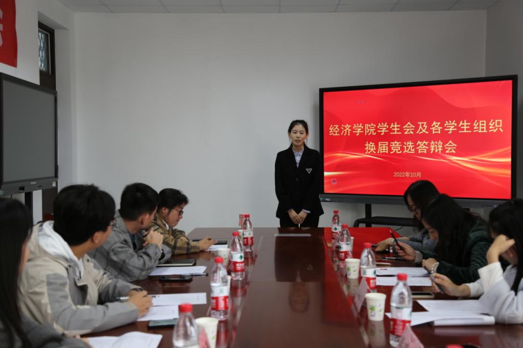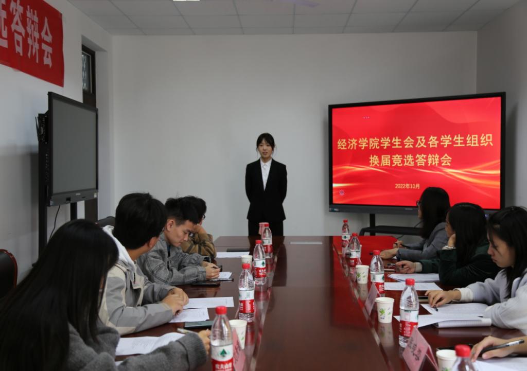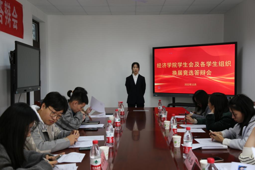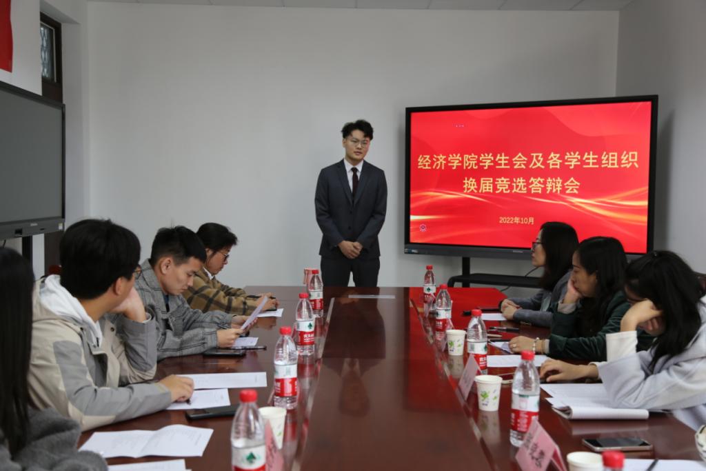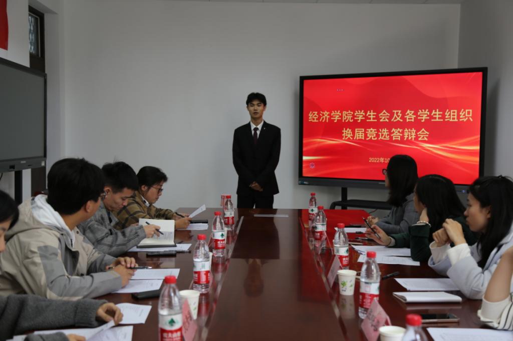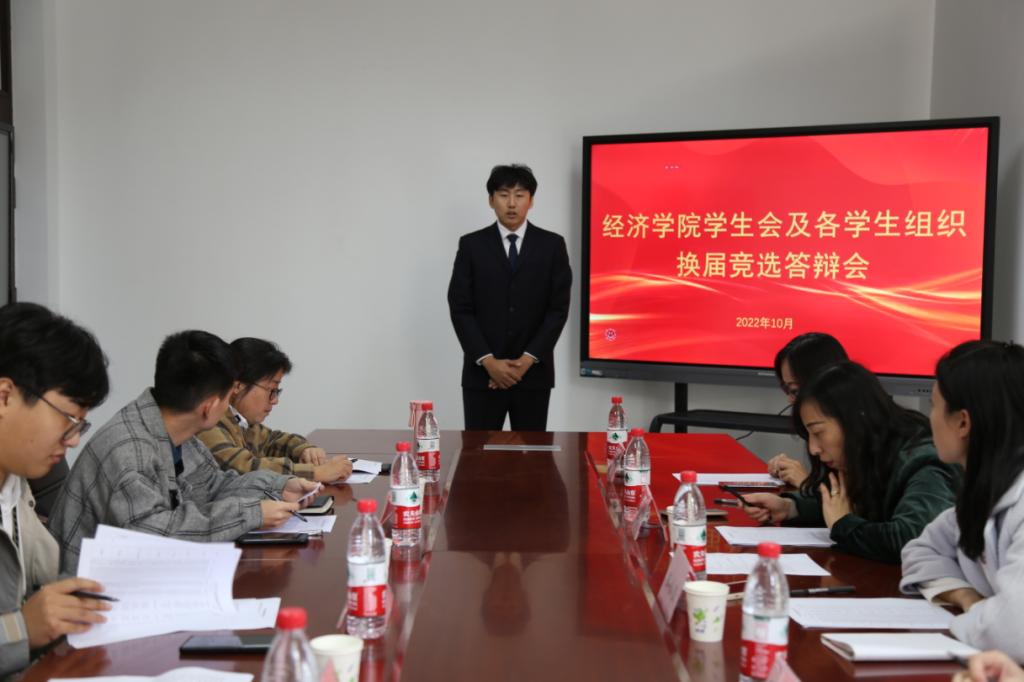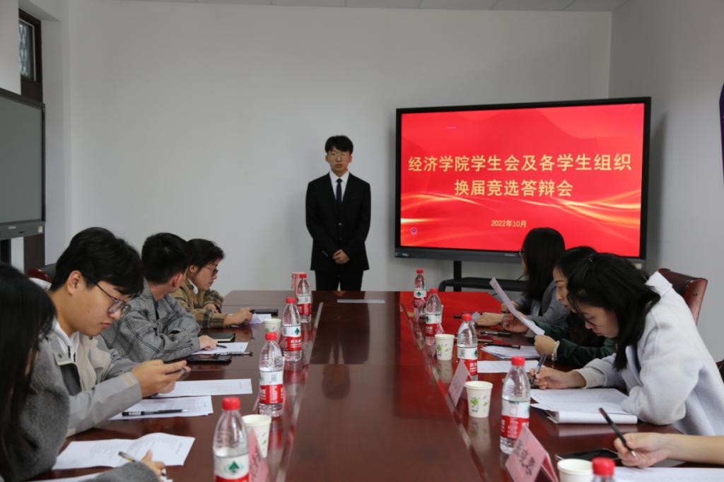 (通讯�:舒展 曾荣�10�21日中�12:30,经济学院于圣井校区举行学生会及学生组织�届竞选答辩会。经济学院党委副书记李冰封,学工办主任裴斐,院团委书记付雯,院党委专职组织员王琦,辅导员秦小晴�谭春光以及第十届学生会主席团成员出席会议并担任评委,2020级�2021级共111名候选人参加答辩�