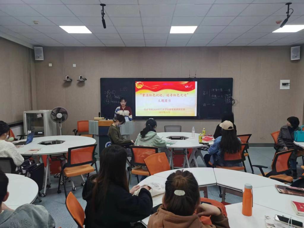 各班团支部围绕聆听红色故事、重温红色记忆、追寻红色足迹的主题,积极开展内容丰富多彩、形式多样的红色主题团日活动,团员青年们认真学习红色精神,讲好革命故事,传承红色基因,积极弘扬伟大建党精神,增强热爱祖国、热爱人民、热爱中国共产党的坚定信念。有的团支部向团员青年分享红色故事,重温一段段红色记忆,追寻一个个红色足迹,领悟先辈带领人民投身革命、改革和建设的艰辛历程,深刻体会红色精神的内涵;有的团支部带领团员青年观看红色影片,学习井冈山精神、长征精神、延安精神等伟大革命精神,体会党经历百年而风华正茂、饱经磨难而生生不息的伟历史;还有的团支部开展红色精神学习分享交流会,同学们各抒己见,纷纷阐述自己对红色精神的理解以及学习心得,表达了应当牢记历史,发奋图强,为祖国发展贡献自己的一份力量的坚定信念�