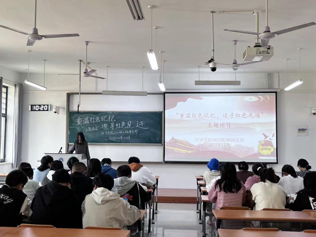 此次主题团日活动系经济学院“红色云展厅”进校园系列活动之一,也是学院学习宣传贯彻二十大精神系列活动之一�引导团员青年们筑牢听党话、跟党走的思想自觉和行动自觉,激发践行爱国之心、强国之志、报国之行的信念,凝聚奋进力量,勇担青年使命,不负时代、不负韶华,不负党和人民的期望,努力用实际行动践行“请党放心、强国有我”的青春誓言�