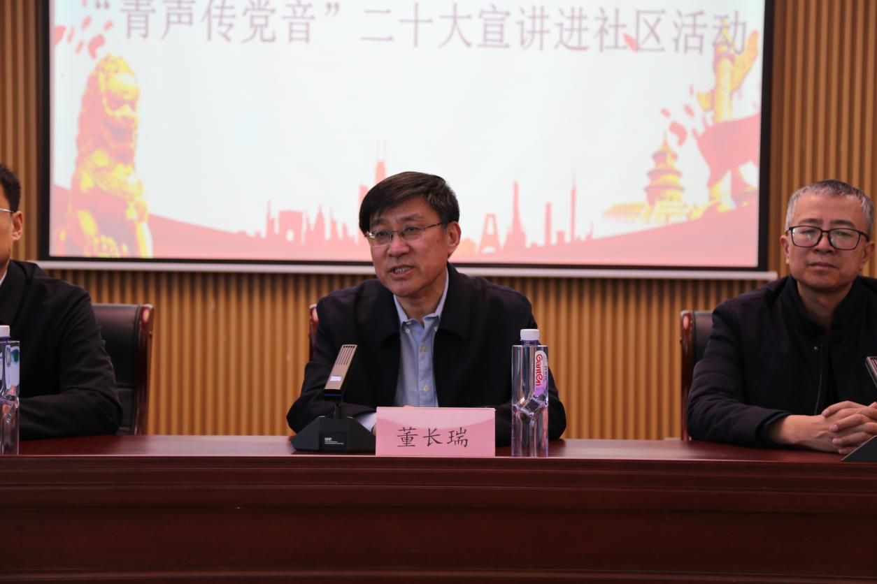 董长瑞介绍了山东财经大学新时代文明实践社科普及志愿服务队的服务架构,以及经济学院“菁彩”青春网格员志愿服务队取得的突出成绩,对碧桂园社区长期以来为青年学生提供社区服务�社会实践的机会平台表示衷心感谢,强调宣讲团要充分认识党的二十大的主要成果、鲜明主题和重大意义,把党的二十大精神和基层治理实际工作结合起来,做到学习好、备课好、审议好、宣讲好、效果好,高质量完成党的二十大精神宣讲工作,坚持党建引领,加强社区动员,提升服务质效,强化统筹协同,让广大居民群众真正实现当家作主,把基层共建共共享治理格局筑得更加牢固。他衷心祝愿本次宣讲志愿服务活动顺利完成、取得成效�