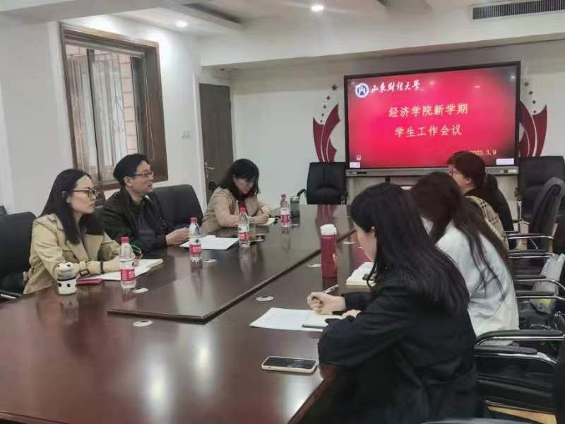 3�9日下午,经济学院召开新学期学生工作会议,学院党委书记姜伟、党委副书记李冰封、陈�及全体辅导员参加会议,会议由党委副书记李冰封主持�