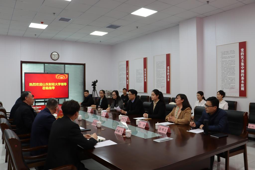姜伟与孙琳进行了会谈,双方就人才培训、项目共建、智库服务、学生培养�实习就业等方面达成校企合作意向。姜伟书记详细介绍了学校办学历史和特色,以及学院在专业学科、教学科研、学生培养等方面所取得的成绩。他指出,校企合作共建社会实践基地和联合培养基地,通力发挥高校和地方国企的双重优势,是双方共同培养新时代人才、响应党中央人才强国号召的重大举措。孙琳主任表示,双方共建大学生社会实践基地,探索校企联合培养新模式,是滨盛集团与山东财经大学携手合作的良好开端。滨盛集团党委副书记董事长谷春生表示,双方将围绕社会实践、项目共建等开展更深入、更广泛的合作交流,实现人才培养和产学研融合的共赀�