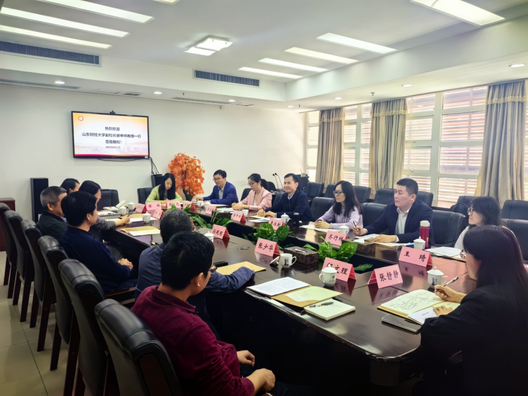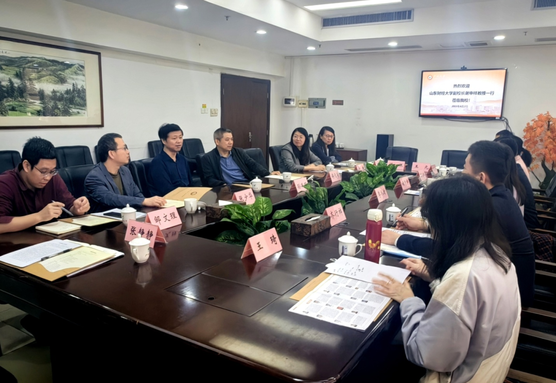4�7日上午,山东财经大学副校长谢申祥带队赴广州大学经济与统计学院调研。广州大学副校长孙延明、经济与统计学院院长傅元海等相关负责人陪同座谈。双方围绕学科建设、科学研究、研究生培养、学生就业、社会服务等工作进行深入交流,尤其是就数字经济的专业建设、大学生就业等工作进行了重点探讨�