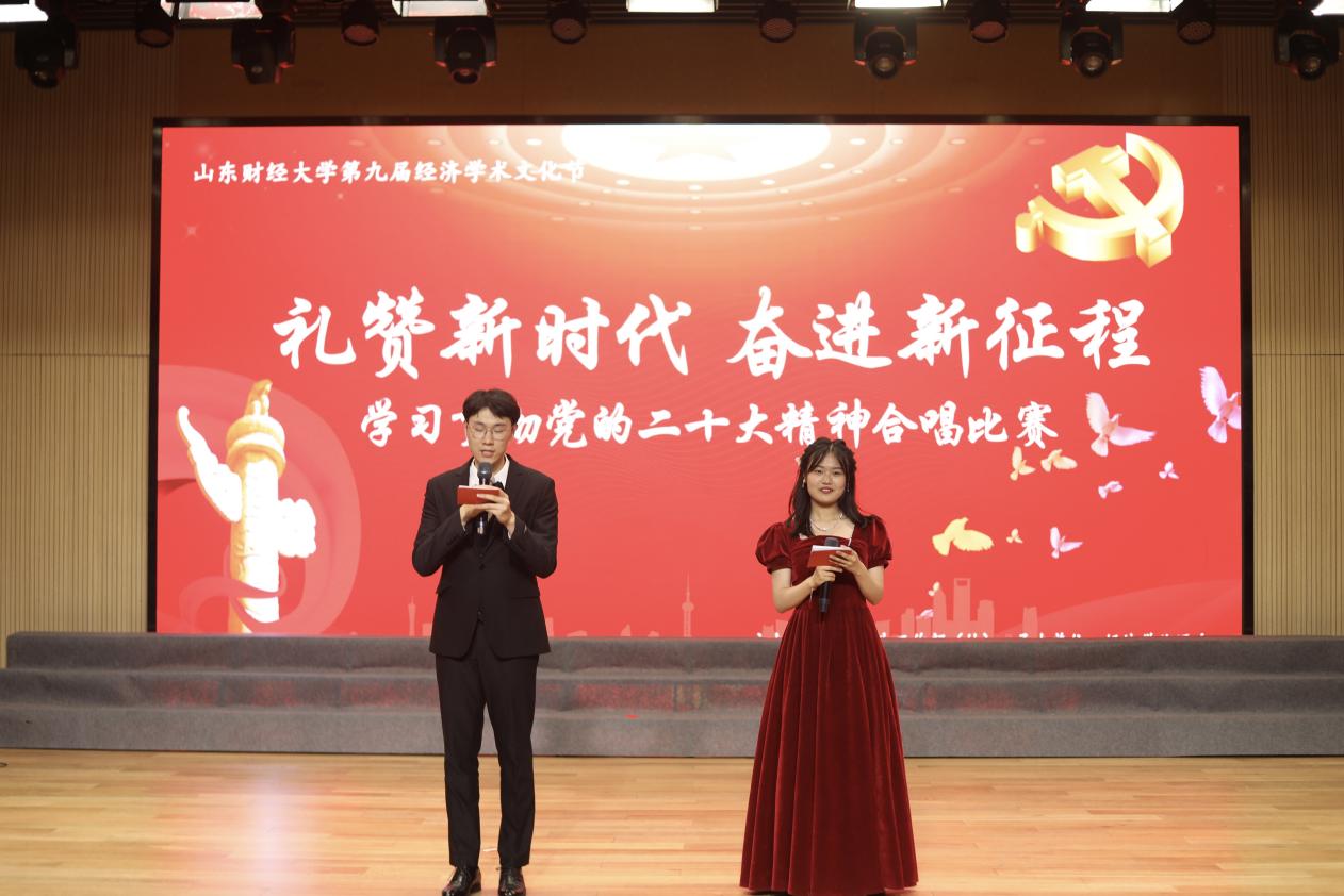 (通讯员:付雯 公天� 舒展 李亦� 孙婷潇)为深入学习宣传贯彻党的二十大精神,引领广大青年永远跟党走,奋进新征程�5�18日下午,经济学院于圣井校区文化活动中心报告厅举办学校第九届经济学术文化节之“礼赞新时代 奋进新征程”学习贯彻党的二十大精神合唱比赛。副校长、经济学院院长谢申祥,校圣井校区管理办公室党委书记高峰、主任王燕,校团委书记王晓迪,校党委宣传部副部长李清照,校团委谭雯雯,经济学院党委书记姜伟,党委副书记李冰封、陈静,副院崔宝敏出席活动,经济学院全体辅导员老师�2021�2022级全体同学参加活动�