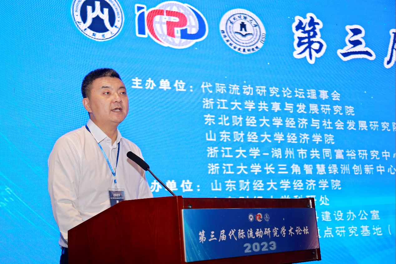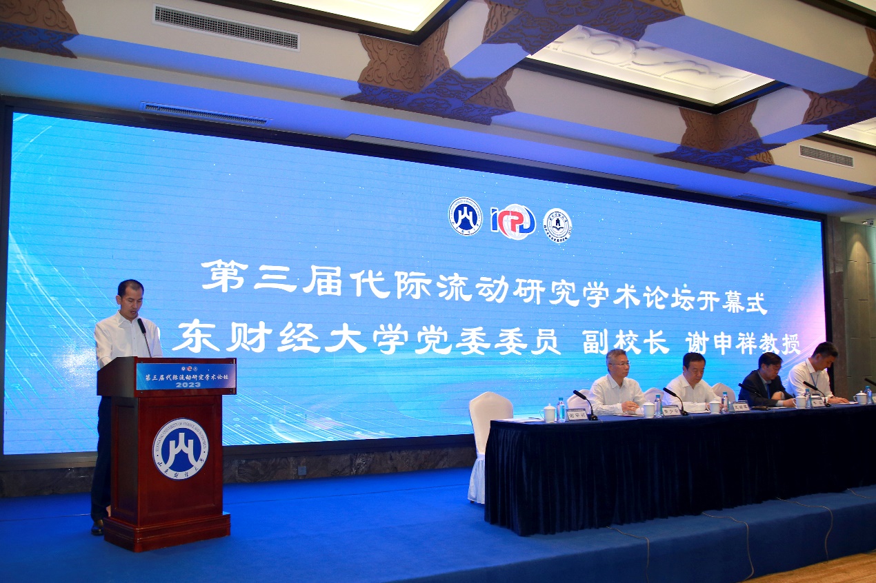 5�20日,由代际流动研究论坛理事会、山东财经大学经济学陀浙江大学共享与发展研究陀东北财经大学经济与社会发展研究陀浙江大�-湖州市共同富裕研究中心、浙江大学长三角智慧绿洲创新中心·共同富裕研究中心主办,山东财经大学经济学陀山东财经大学科研处、山东财经大学学科建设办公室、山东省社科理论重点研究基地(习近平经济思想研究基地)承办的第三届代际流动研究学术论坛(2023)在舜耕山庄举行。山东财经大学党委书记王邵军教授出席开幕式并致辞,开幕式由山东财经大学副校长谢申祥教授主持�