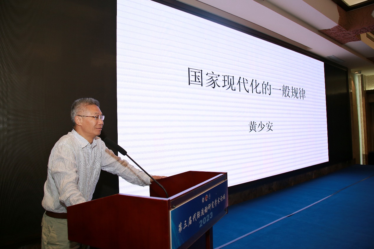 山东大学讲席教授、经济研究院院长黄少安教授以《国家现代化的一般规律》为题,依次介绍了国家现代化面临的土地用途改变等背景规律,技术创新与制度创新的驱动引领规律,经济增长速度递减规律,经济增长波动率大规律,再分配诉求强化规律,后发优势与后发劣势并存规律和越强越自由开放、越弱越需要保护规律。强调了代际流动研究应结合现代化发展规律,顺应发展需求,做出科学正确的判断与分析�