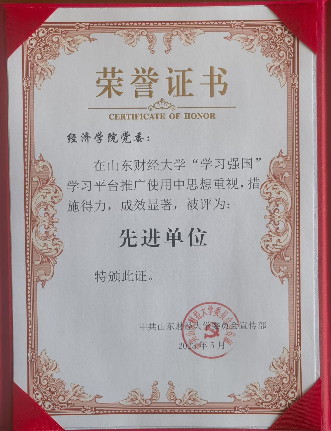 在本次表彰会上,经济学院党委被评为“学习强国”学习平台推广使用先进单位,于凤芹、马祥振、齐行祥、周宁、裴斐、王琦珀、张杰吕永泽、苏芸琦9名党员同志获先进个人称号。学院党委副书记李冰封在表彰大�上做交流发言�