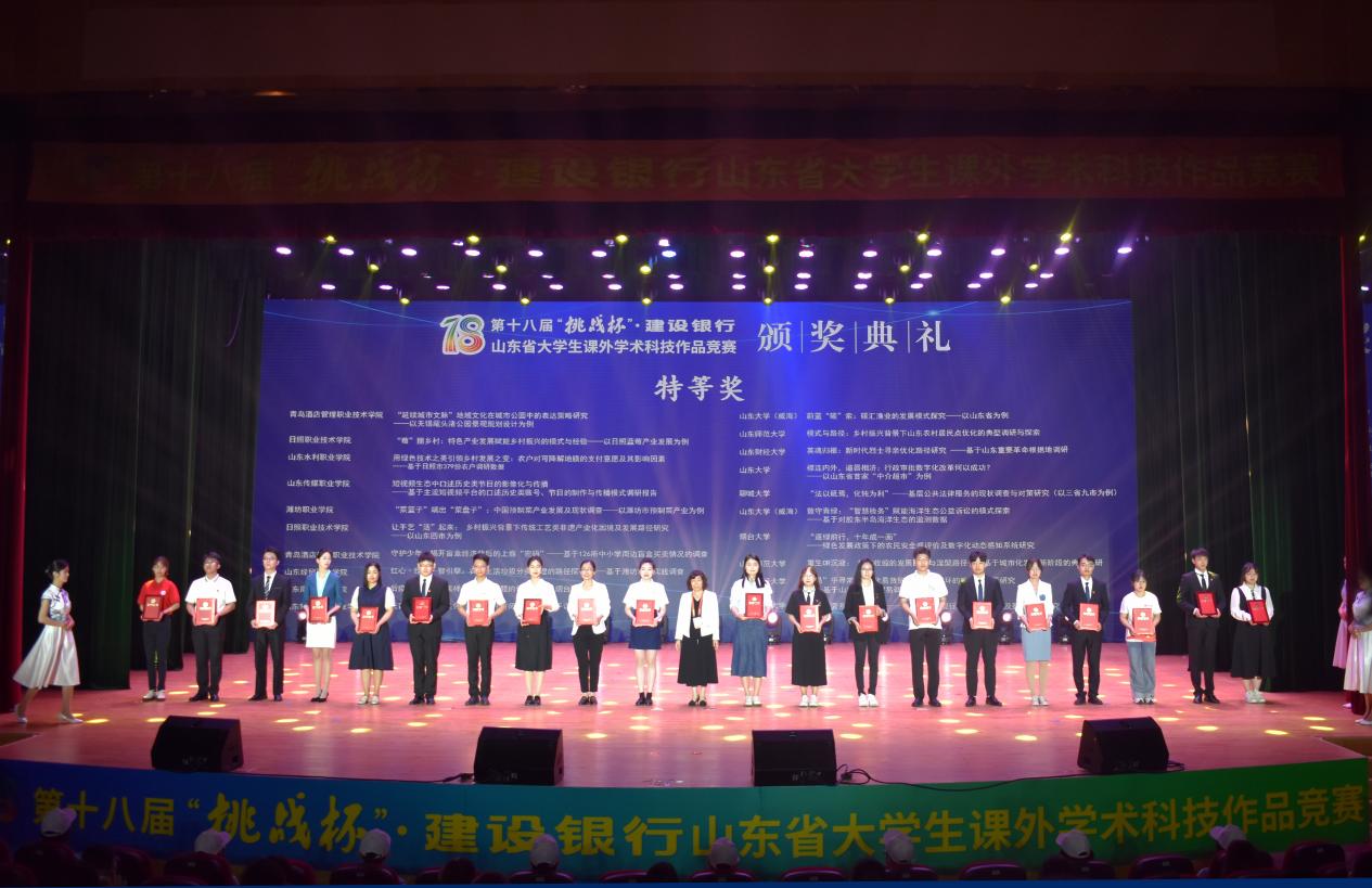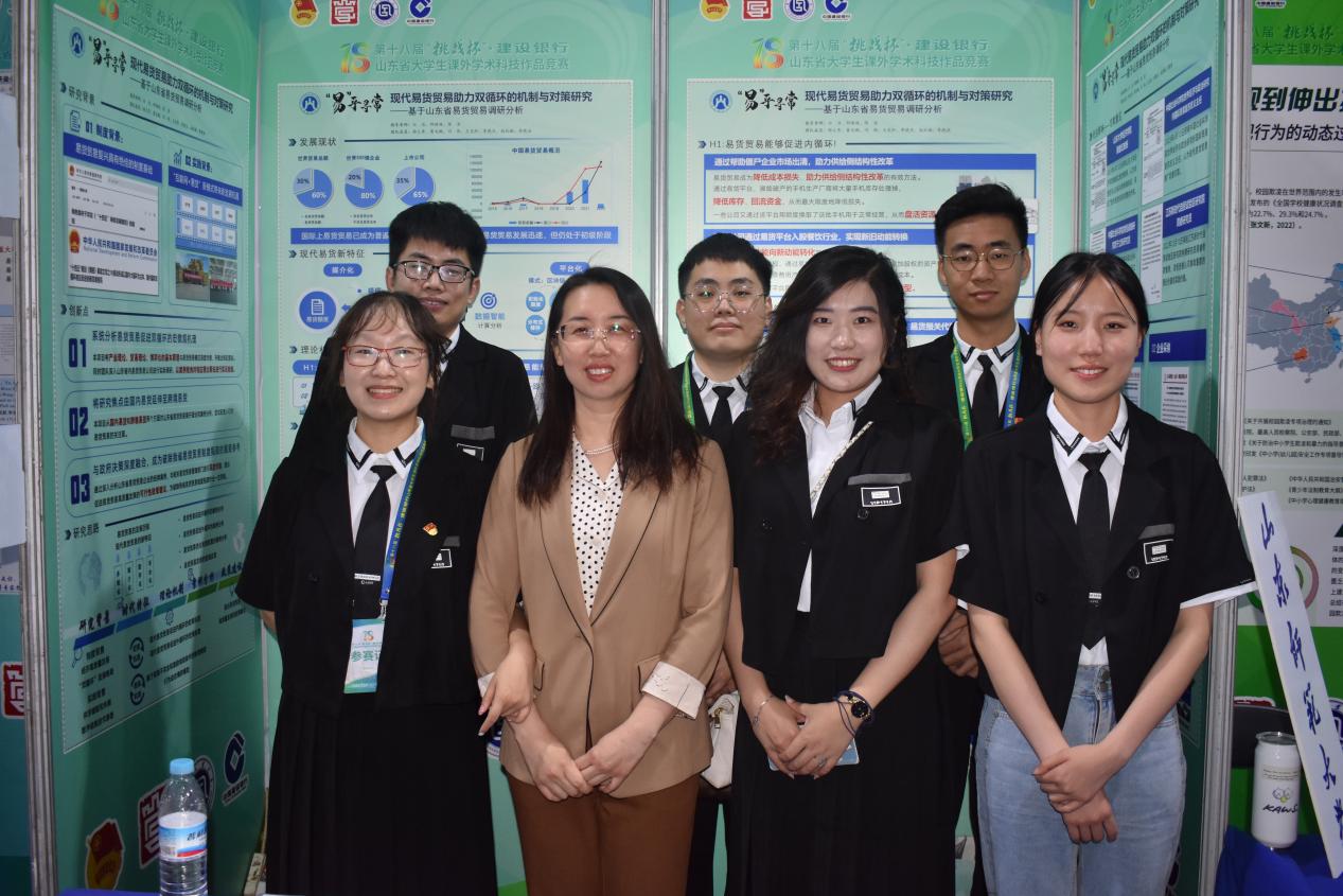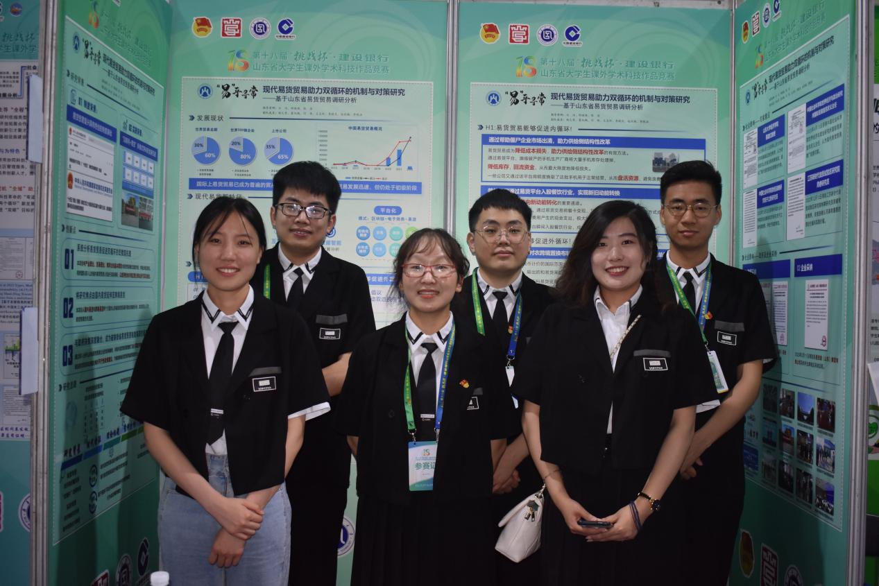 5�22日,由共青团山东省委、山东省科学技术协会、山东省教育厅、山东省科学技术厅、山东社会科学院、山东省学生联合�主办,齐鲁工业大学(山东省科学院)承办的第十八届“挑战杯”·建设银行山东省大学生课外学术科技作品竞赛(普通高校组)落下帷幕。由经济学院白洁教授、邵瑛瑛老师,国际经贸学院校外导师陈浩指导,经济学院研究生杨文秀担任队长的“‘易’乎寻常:现代易货贸易助力双循环的机制与对策研究——基于山东省易货贸易调研分析”项目获得山东省特等奖,并推向国赛环节。�