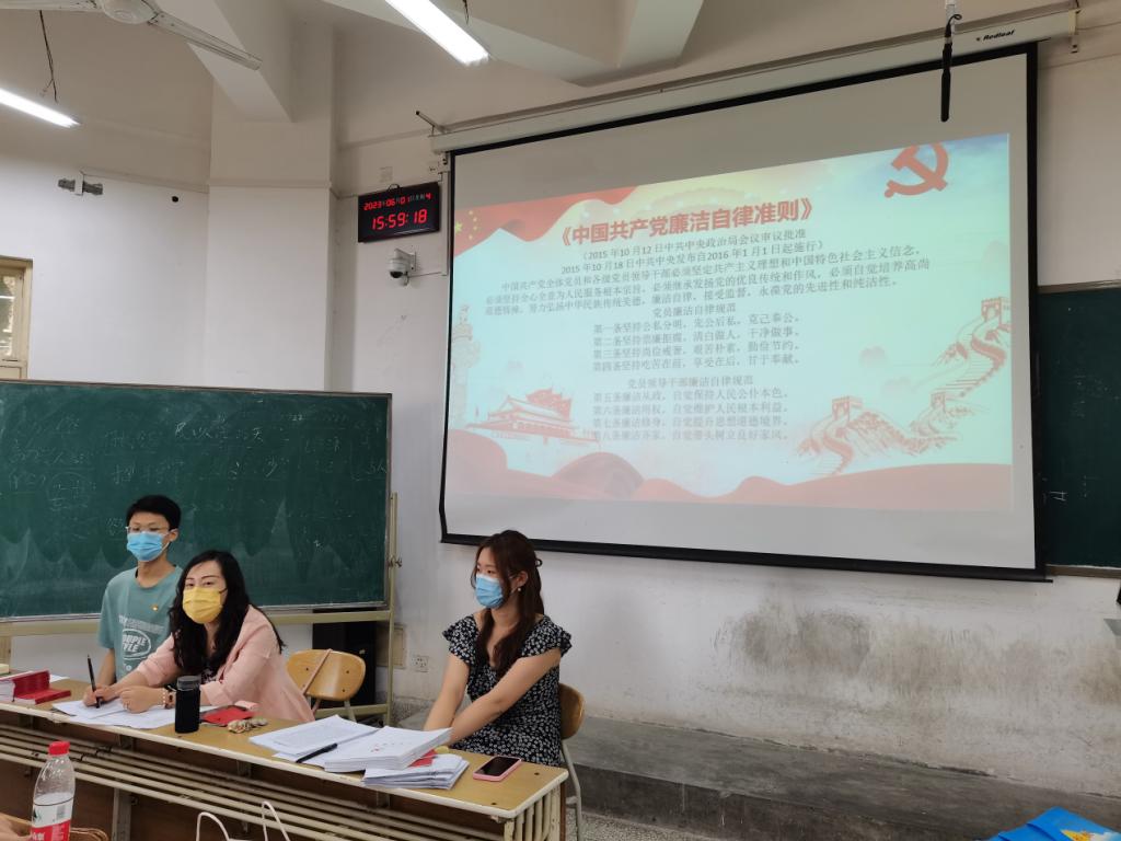 学院组织各学生党支部开展廉政教育主题党日活动。各党支部学习了《中国共产党章程》中党的纪律这一章节的全部内容和《中国共产党廉洁自律准则》全部内容,并重温入党誓词。通过此次主题党日活动,毕业生党员表示在今后工作中,严格要求自己,筑牢思想防线,强化廉洁自律意识,做廉洁自律的表率�