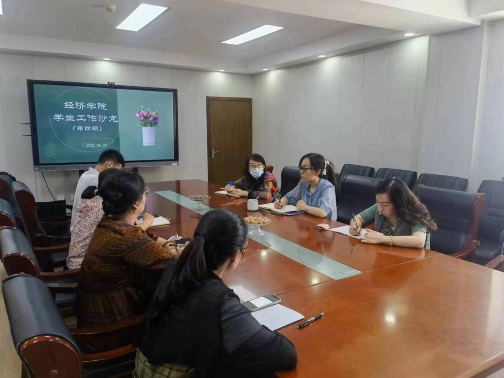 为全面总结本学期学生工作,搭建辅导员学习交流平台,进一推动我院学生工作的创新发展�2023�6�20日,经学院顺利举办学生工作沙龙第四期,经济学院党委副书记李冰封、陈静和学院全体辅导员参加沙龙活动�