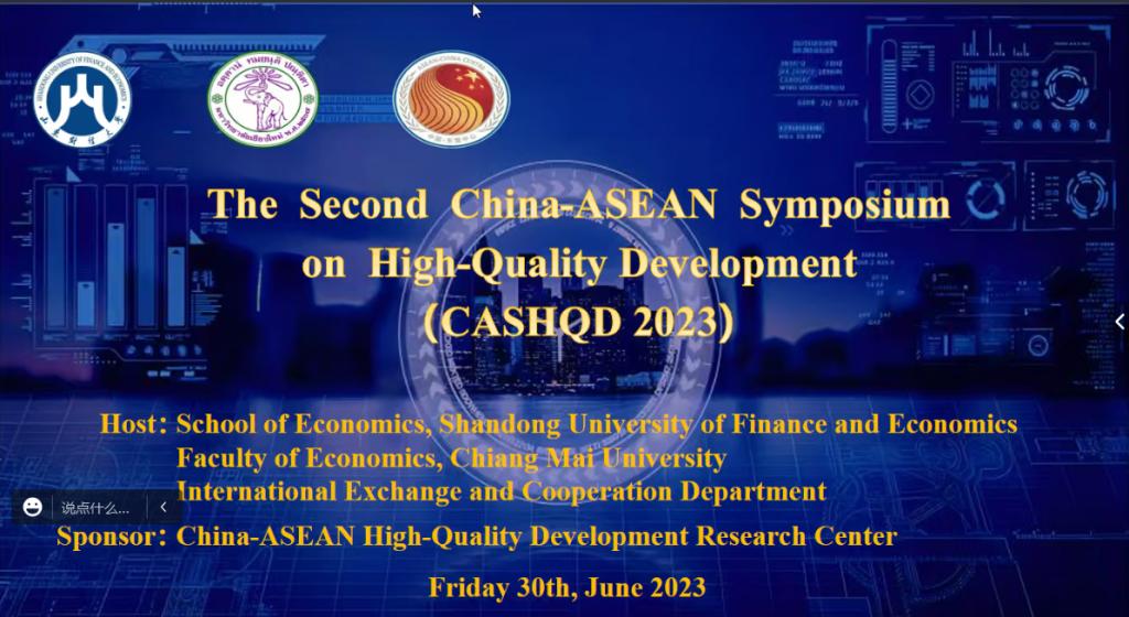 2023�6�30日,第二届中�-东盟高质量发展研讨会(CASHQD2023)在线上成功举办。本次研讨会�山东财经大学经济学院、国际交流与合作处以及泰国清迈大学经济学院主办,中国-东盟高质量发展研究中心承办,旨在为参与中国和东盟高质量发展各个方面的研究人员、学者和广�师生提供学术交流与合作的平台�