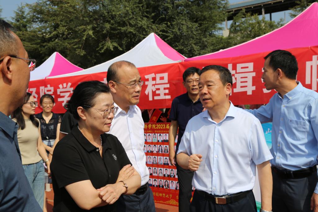 学校党委书记王邵军,党委副书记张培国,副校长陈晓兰、谢申祥等在相关部门工作人员陪同下莅临经济学院迎新现场,浏览迎新展板,检查现场布置,看望慰问现场工作人员和学生志愿者,对我院迎新工作表示高度肯定。校领导强调要建立良好的“家校联动,同心育人”机制,鼓励新同学尽快适应新环境和的学习生活节奏锻炼自立自主能力,开启全新大学生活�