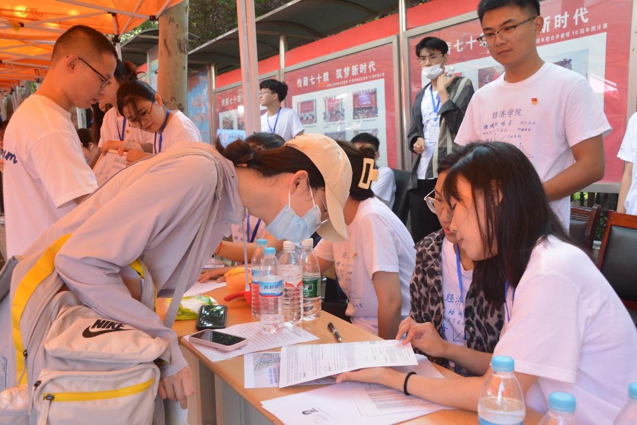 志愿者们往返于报到点与�舍楼,为新生答疑解惑,搬运行李。“欢迎加入经济学院”“我帮你拿行李”“宿舍楼请向这边走”,每一亲切话语,每一次热情引导,都是经济学院学长学姐对新生最真挚的关怀�