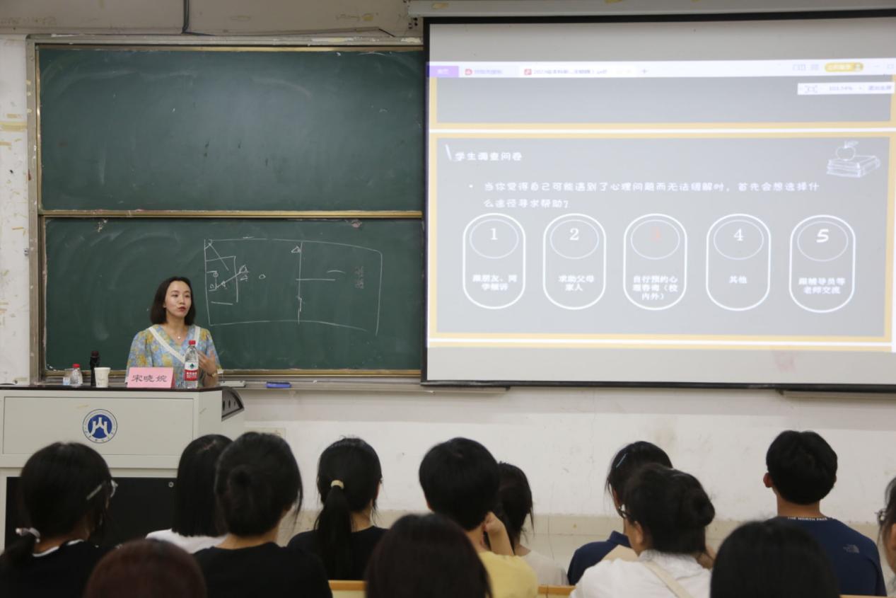 针对当前大学生常见的压力情景,宋晓婉分别从学习压力、人际关系、情绪管理等方面阐释如何用积极阳光的心态统领生�的状态,引导同学们以更加饱满的精神风貌迎接未来�大学生活。她以星座、MBTI等案例引出“巴纳姆效应”等心理学知识,帮助同学们进一步了解心理学,纠正对心理学的错误认知,培养自立、自强、自律的良好心理素质�