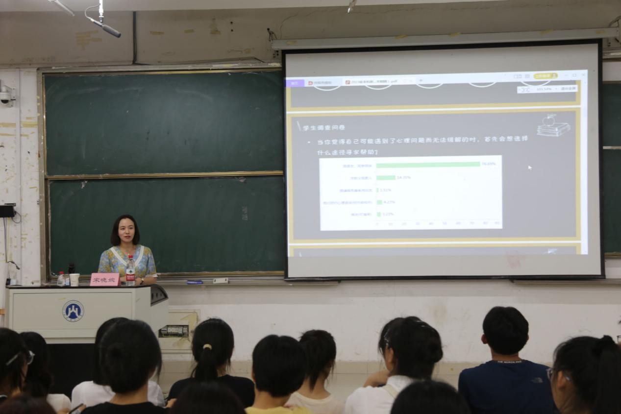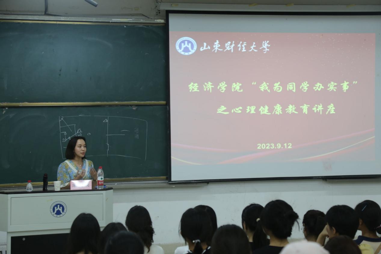 (通讯员:公天� 孙婷潇)为深入贯彻落实《教育部关于加强学生心理健康管理工作的通知》要求,普及正确的心理健康知识,帮助新生保持良好的心理状态�9�12日晚,经济学院在圣井校区5号教学楼举办“我为同学办实事”之心理健康专题讲座,讲座特邀山东财经学大学生心理健康与研究中心专职教师、国家二级心理咨询师宋晓婉主讲,经济学院2023级全体新生参加。讲座由经济学院教师刘传明主持�