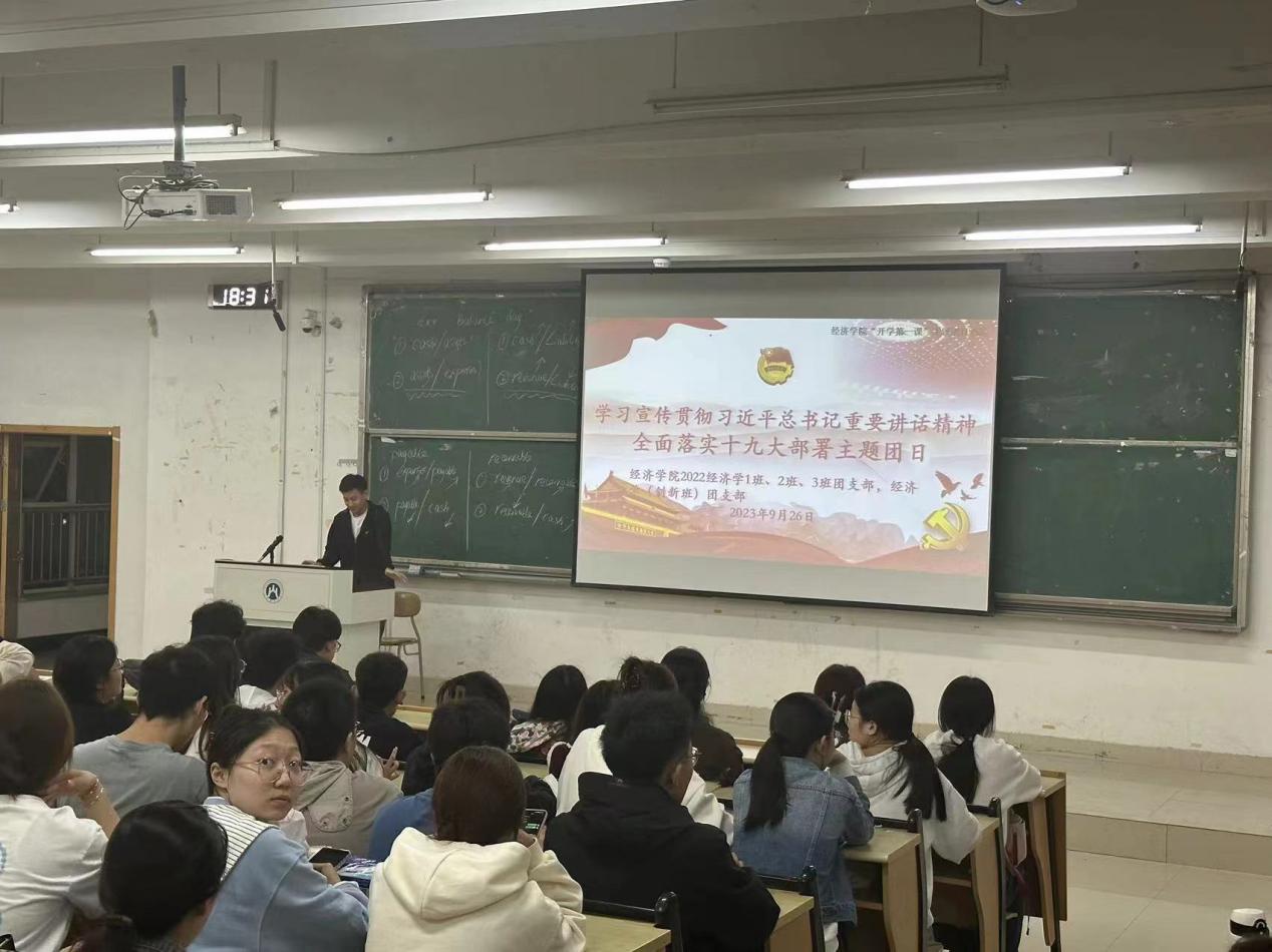 (通讯员: 公天琦)为深入学习宣传贯彻习近平总书记重要讲话精神,进一步领会习近平总书记关于青年工作的重要思想,坚定共青团员听党话、跟党走的政治信念,9�20日—�9�28日,经济学院团委积极响应校团委通知要求,组�2021�2022级本科生团支部开展“学习宣传贯彻习近平总书记重要讲精� 全面落实团十九大署”主题团日活动�