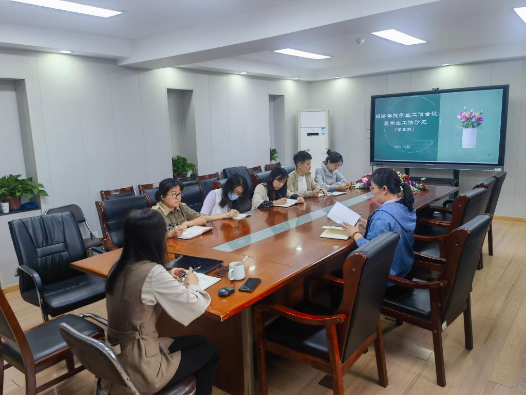 10�7日下午,经济学院召开新学期学生工作会议暨第五期学生工作沙龙,学院党委副书记李冰封、陈静及全体辅导员参加会议,会议由党委副书记冰封主持�