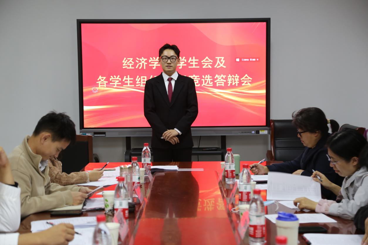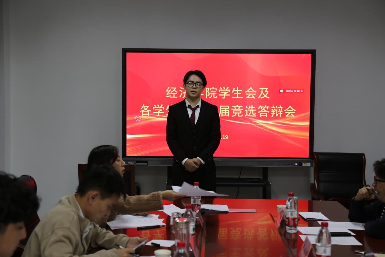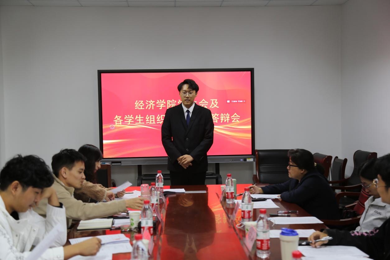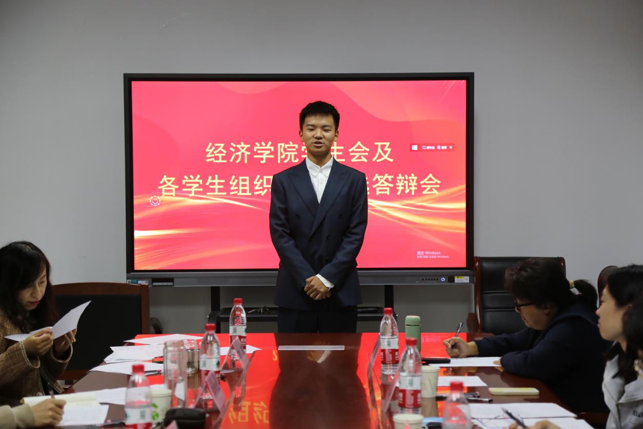 (通讯员:孙婷� 张艺� 公天� 李亦菲)为加强经济学院学生会及学生组织团队建设,引领青年学子成长成才,充分发挥学生的主人翁意识和骨干作用�10�19日下午,经济学院于圣井校区七号教学楼召开学生会及各学生组织换届竞选答辩会。经济学院学工办主任裴斐,院团委书记付雯,辅导员秦小晴、谭春光以及第十一届学生会主席团成员出席答辩会并担任评委,2021�2022级共120名候选人参加答辩�