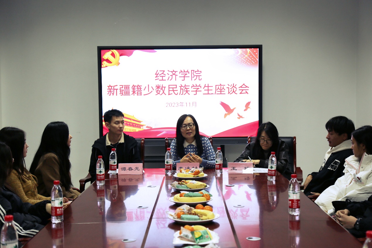 (通讯员:燕丽� 何瑞佳)为进一步引导经济学院师生铸牢中华民族共同体意识,自觉护民族团结,加强与少数民族学生的沟通与交流,全面了解经济学院少民族学生的学习与生活情况,不断提升少数民族学生教育管理水平�11�20日晚,经济学院于圣井校区7213会议室举办经济学�2023年新疆籍少数民族学生座谈会。经济学院党委副书记李冰封、院党委专职组织员王琦、辅导员谭春光出席会议,经济学院2022级�2023级新疆籍少数民族学生到场参加。会议由李冰封主持�