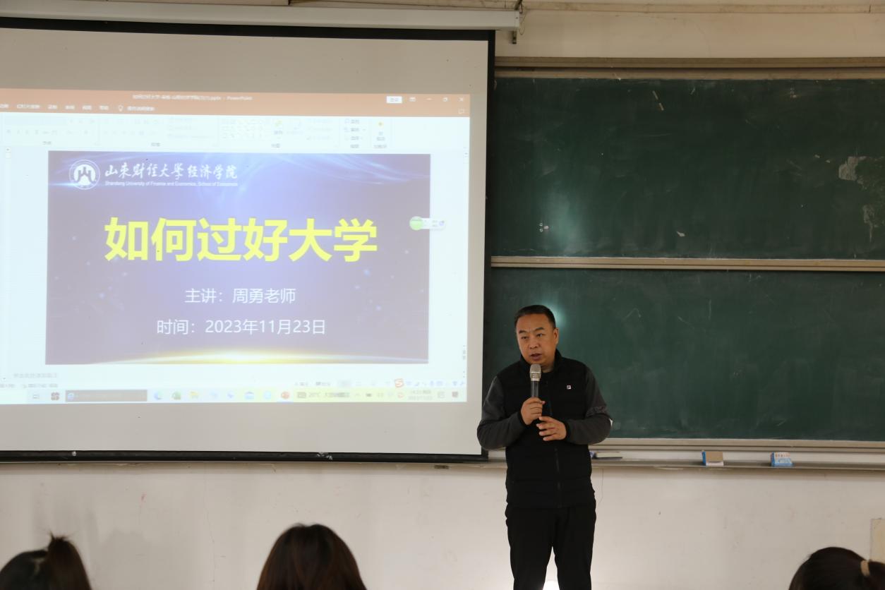 (通讯员:燕丽� 董欣怡)为帮助我院新生树立职业生涯规划意识,进一步了解考研、就业形势,明确未来发展目标,制定职业发展规划,11�23日,经济学院于圣井校区一号教学楼130举办“如何过好大学”职业生涯规划讲座。本次讲座邀全国著名考研指导专家,清华、北大、山大创业导师,大学生职业规划专家周勇主讲。经济学�2023级全体新生到场参加�