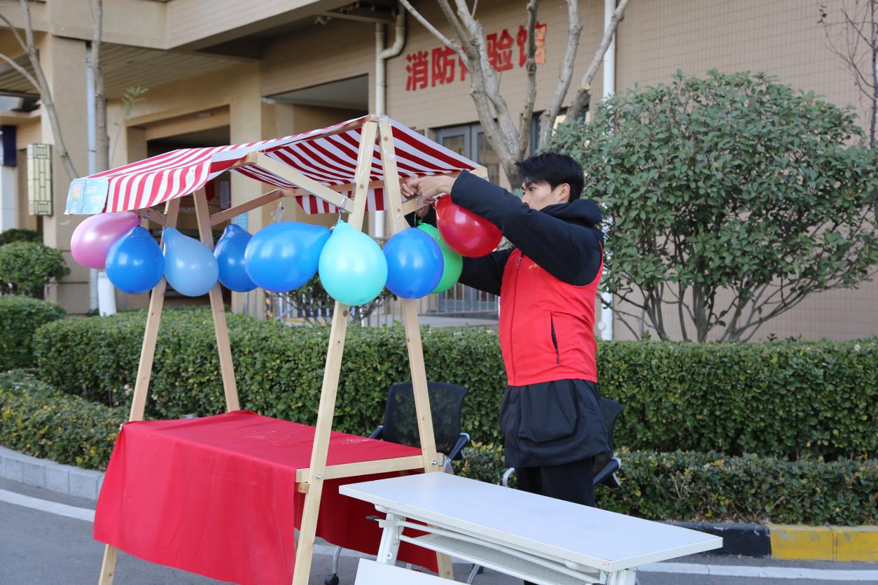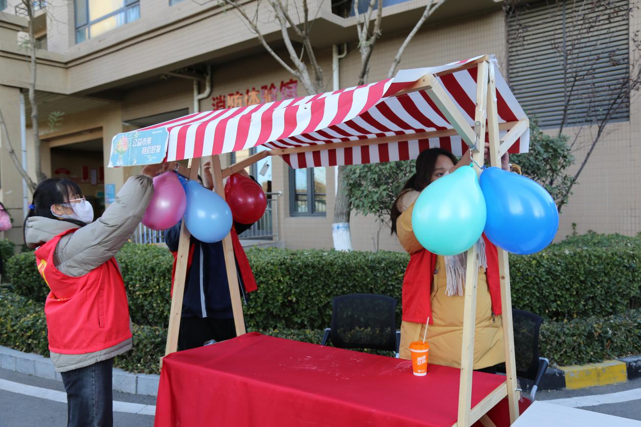 冬日暖阳,晴空碧澄。志愿者们早早地来到圣井碧桂园社区党群服务中心,帮助社区工作人员布置公益市集摊位,拉横幅、吹气球、摆放桌椅、铺设装饰、搬抬工具�30位志愿者在社区工作人员的指导下,完成了口腔检查、中医问诊、视力检查、爱心义剪、磨菜刀、裁缝铺、修毛、小家电维修� 手工编织、鲜奶酸奶等十余个摊位的布置工作�