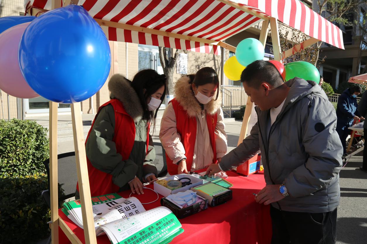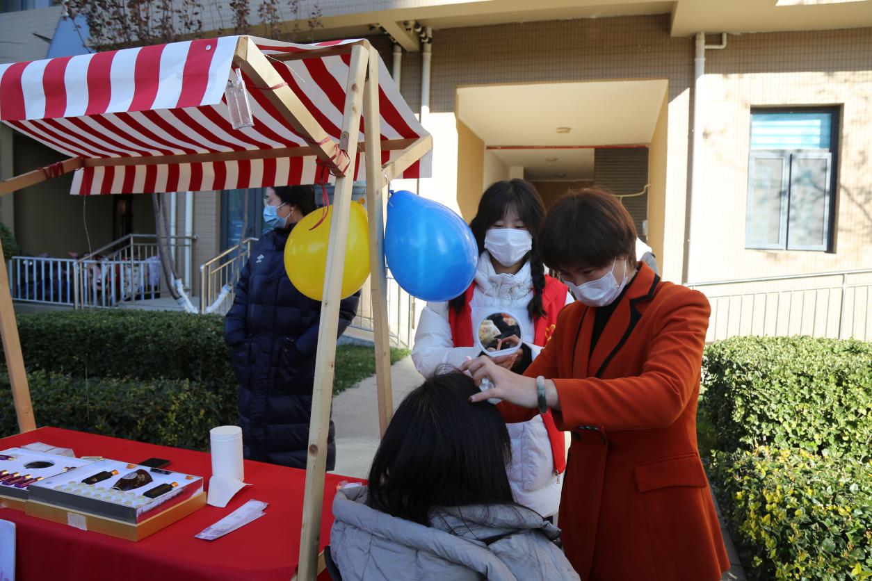 上午9:30,活动正式开始,志愿者们坚守在自己负责的岗位上。爱心义诊区�志愿者们向居民科普检查注意事项、引导现场排队秩序,助力义诊活动高效平稳的推进。便民服务区,志愿者们协助进行公益理发、磨刀、缝�衣服、心理健康咨诀闲置物品互换等活动,了解居民生活需求,耐心帮助居民解决问题,为居民的日常生活带来落到实处的帮助。创意社交区,志愿者们协助介绍毛毡帽子、蜡烛、捕梦网的制作过程,引导社区居民前来体验手工艺术的魅力,为传承手工艺术贡献青年力量�