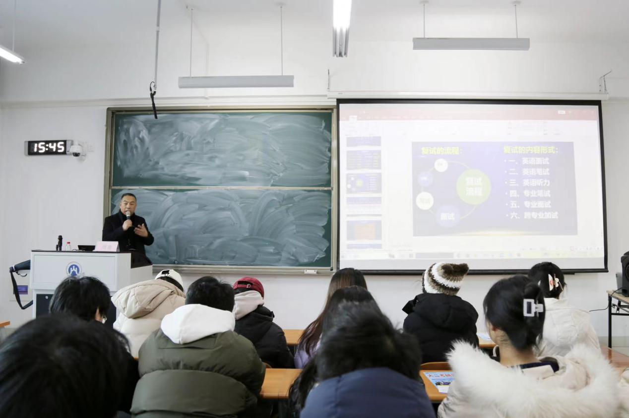 首先,周勇针对目前考研常见问题,�考研科目、对口专业、考研心态等方面详细解读“大学生应如何为考研做好准备”:一是了解统招人数和分数线;二是了解复试和拟录取流程;三是了解报考学校的专业课和奖学金政策。周勇引导同学们从现在开始制定合适的考研规划,树立积极的心态,明确未来的奋斗目标�