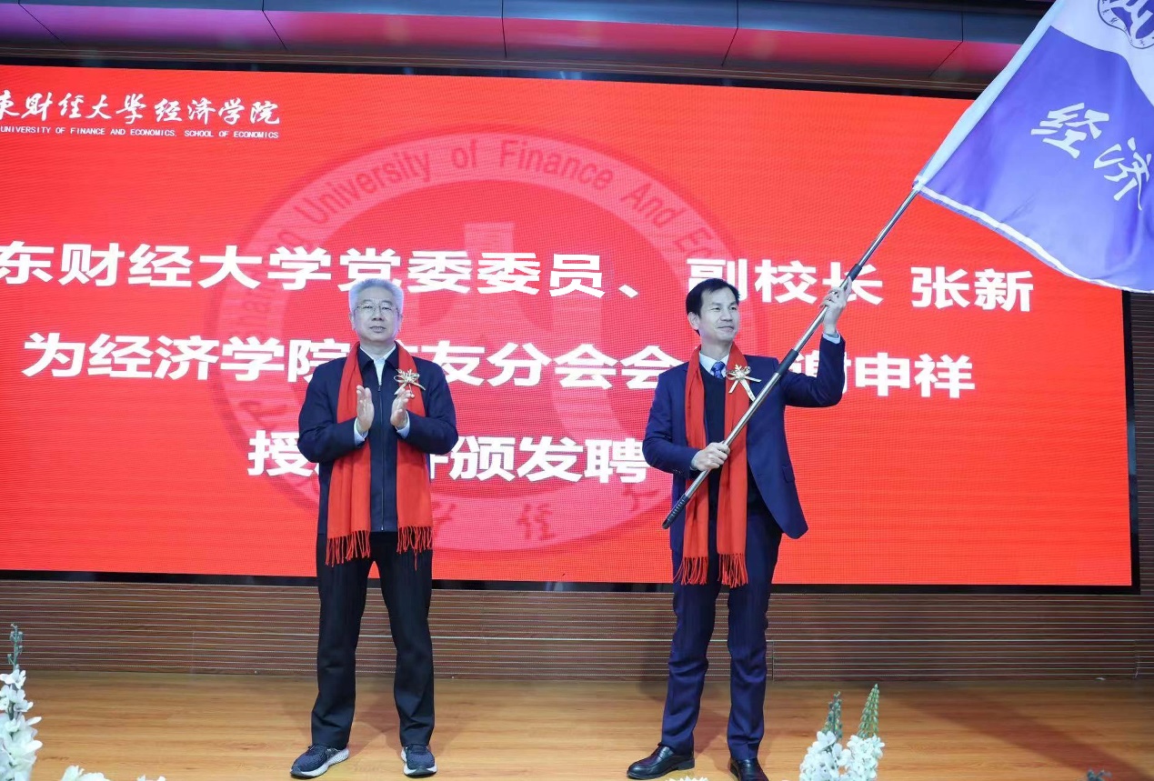 张新代表学校全体师生员工向出席大会的各位校友表示诚挚的欢迎,向多年来一直关心支持学校建设发展的广大校友表示衷心的感谢,向山东财经大学校友会经济学院分会成立表示热烈的祝贺。他表示,经济学院多年来培养的大批优秀校友为学校赢得了较高的社会声誉,校友们的奋斗和取得的优异成绩,极大地提高了学校的社会影响力和美誉度。经济学院校友分会成立,一方面要传承学校和学院的优良传统和教育理念,助力经济学院的全方位建设和学校的教育事业。以经济人、财大人的精神和情怀,投入到国家各行各业的建设浪潮之中,为学校和学院增光添彩;另一方面,希望广大校友为学院、学校发展献计献策,积极参与学院、学校的校友工作,通过互动、互助、互爱的校友活动,让广大校友在这里感受到家的温暖,让这里成为经济学院校友永远的精神家园。学校也将更加坚定地支持校友会工作,也希望经济学院更加积极、主动地联系海内外校友,不断厚植广大校友的爱校荣校情怀,让校友会成为学院最有影响力的名片,成为推动学院建设发展的平台和不竭动力源泉�