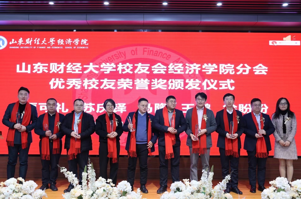 学院校友分会秘书长李冰封为优秀校友贾可礼、苏庆铎、马隆、王鹏、徐盼盼、周庆贵、闫瑞鹏、王东亮、张尧颁发山东财经大学经济学院优秀校友荣誉奖�
