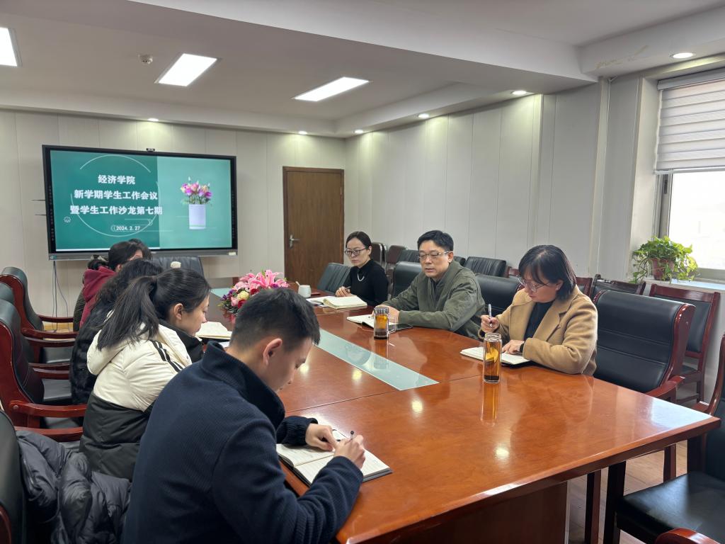 2�27日上午,经济学院召开新学期学生工作会议暨第七期学工作沙龙,学院党委书记姜伟、党委副书记李冰封�陈静及全体辅导员参加会议,会议由党委副书记李冰封主持�