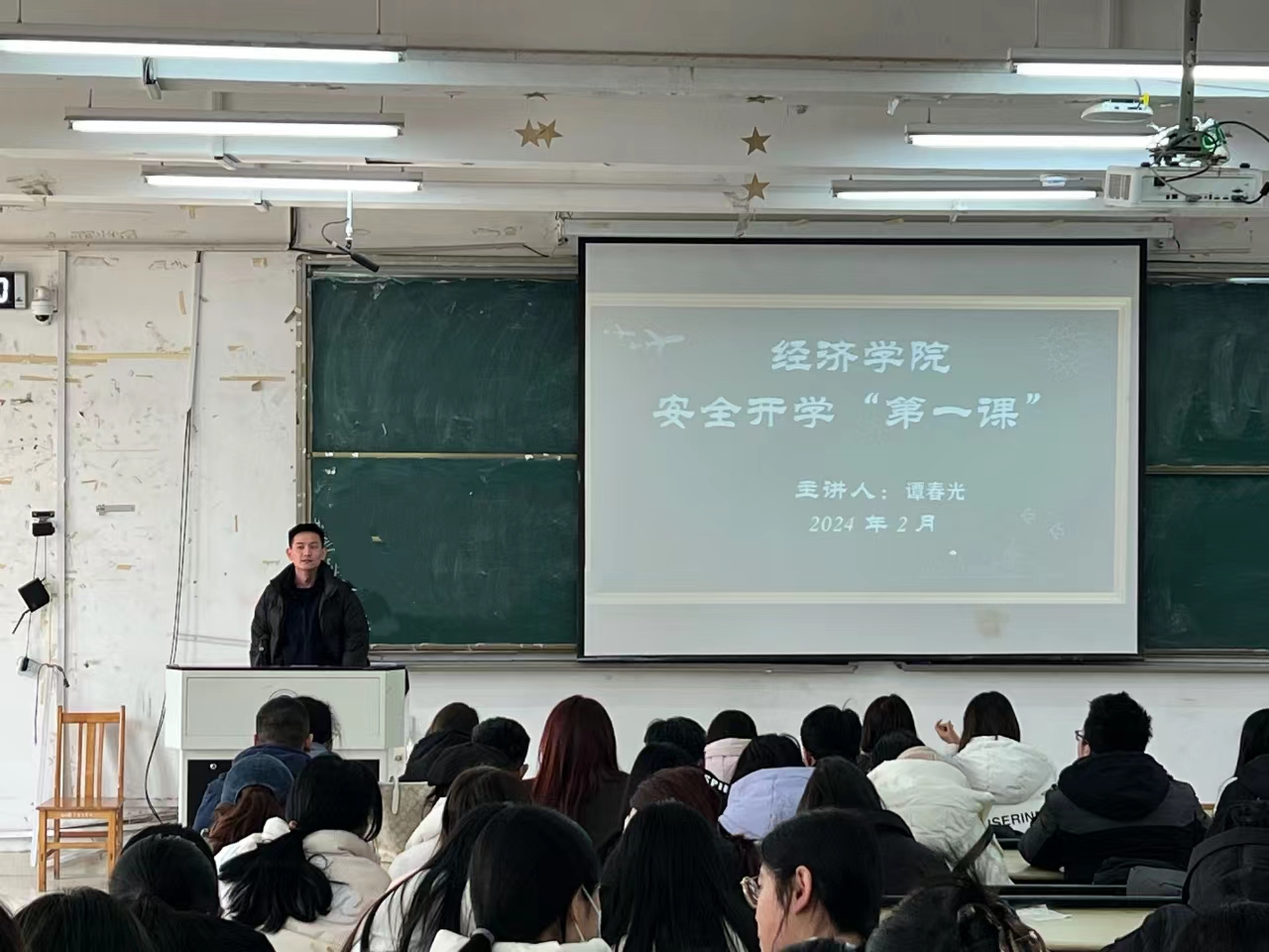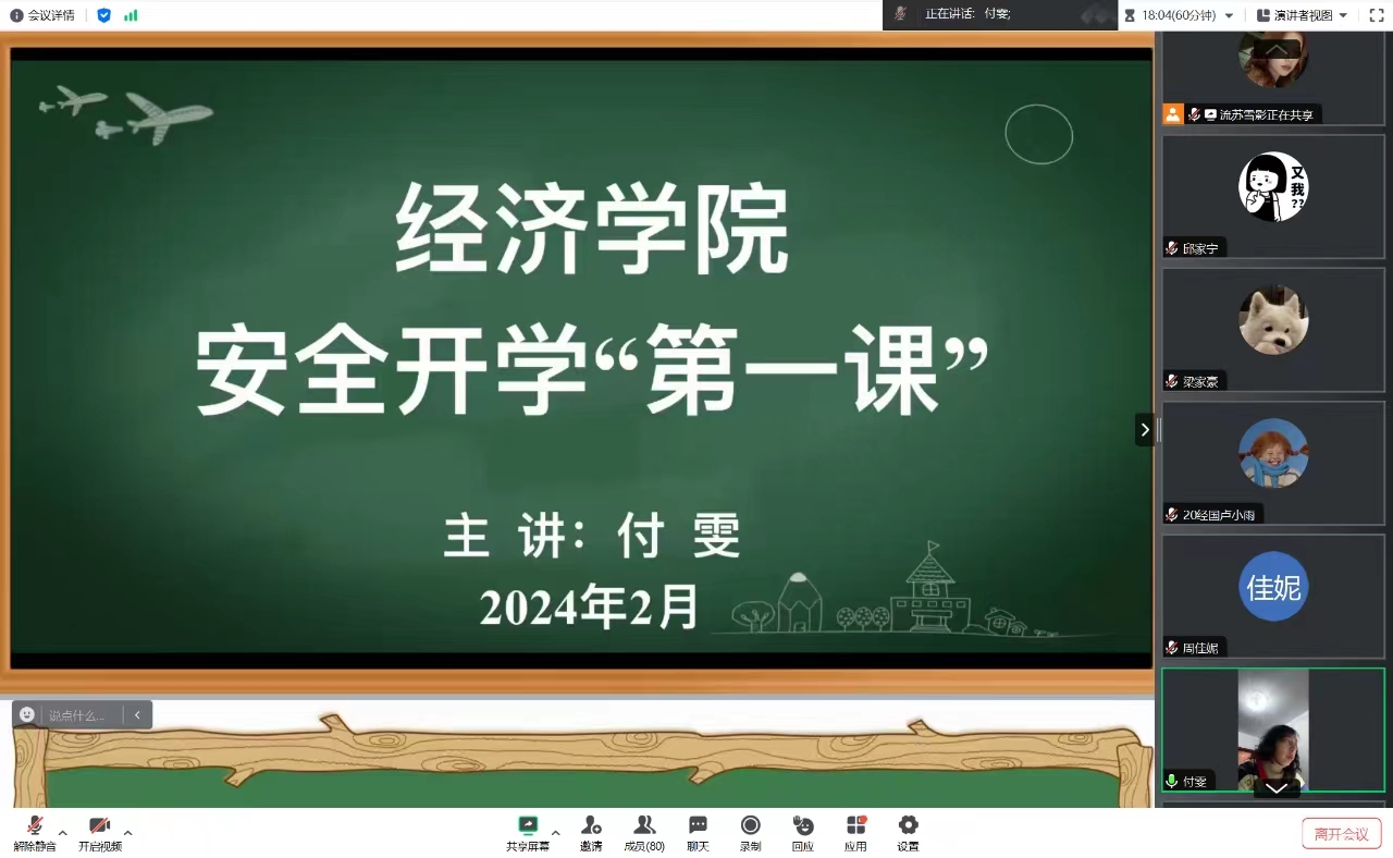 新学期伊始,为落实立德树人根本任务,进一步加强对学生安全管理和�育,引导学生提高安全素养,增强防范意识,帮助学生们养成良好的习惯,营造和谐有序的校园氛围�2024�2�28日,经济学院各班级召开了安全开学“第一课”主题教育班会,辅导员及全体学生参加了主题班会�