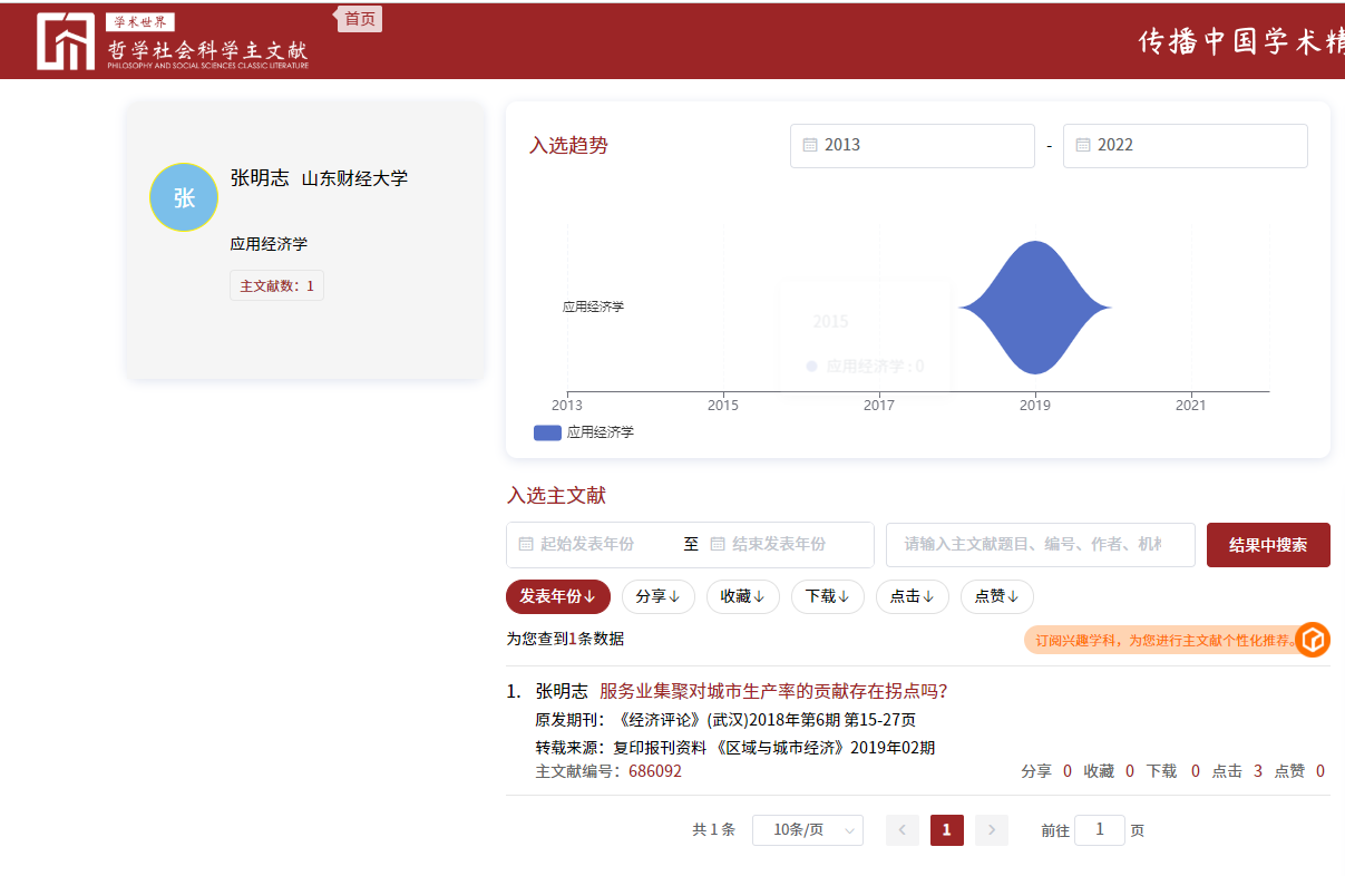 本次文献遴选主要基�2013-2022年十年间哲学社会科学领域发表的全部论文,并参考二次文献转载(摘)、高等学校科学研究优秀成果奖论文、高被引论文情况,以及通过专家推荐等形式,广泛征集学界意见,形成初始文献进评审流程,再通过专家对初评结果进行复�并最终确定入选论文,入选文献占所有正式发表文献的0.5%�