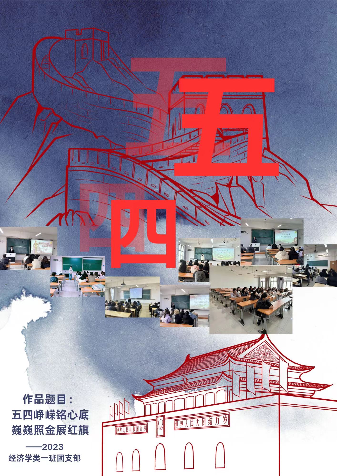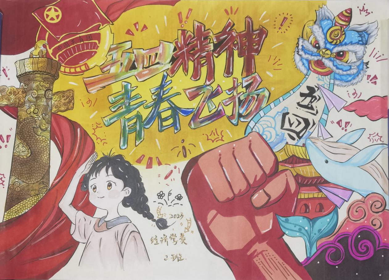 此次大赛面向经济学院2022级�2023级各团支部,历时一个多月,分宣传动员、征集作品、评审评奖三个阶段,各团支部围绕“承五四精神 展支部风采”主题,通过手绘或电子设计的形式,展示各团支部在思想引领、组织建设、服务青年等方面的亮点和特色。各参赛作品主题鲜明,内容丰富,形式多样。经济学专业2022�2班团支部作品《承五四精神,展支部风采》用凝练且有条理的文字介绍团支部建设总体情况,显示团支部组织建设成绩和特色;2023级经济学�1班团支部作品《五四峥嵘铭心底,巍巍照金展红旗》以水墨铺底,将团支部开展主题团日的照片融入巍巍长城图案�2023级经济学�2班团支部作品《五四精神,青春飞扬》色彩鲜艳,画工精妙,闪耀的团徽、飞扬的红旗、舞的雄狮跃然纸上,生动地诠释了青年弘扬五四精神的坚定信念;资源与环境经济学专�2022级创新实验班团支部作品《我们在行动》更是从组织建设和思想引领两个方面展现了团支部对五四精神的生动实践�