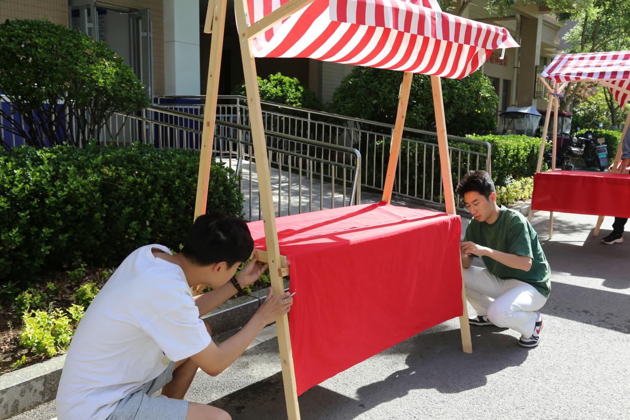 早上八点半,志愿者来到圣井碧桂园社东区。在社区工作人员的指导之下,我院志愿者完成了十余个摊位的布置工作。志愿者们身着红色马甲,认真做好每一个细节,全力以赴地确保志愿活动顺利开展�