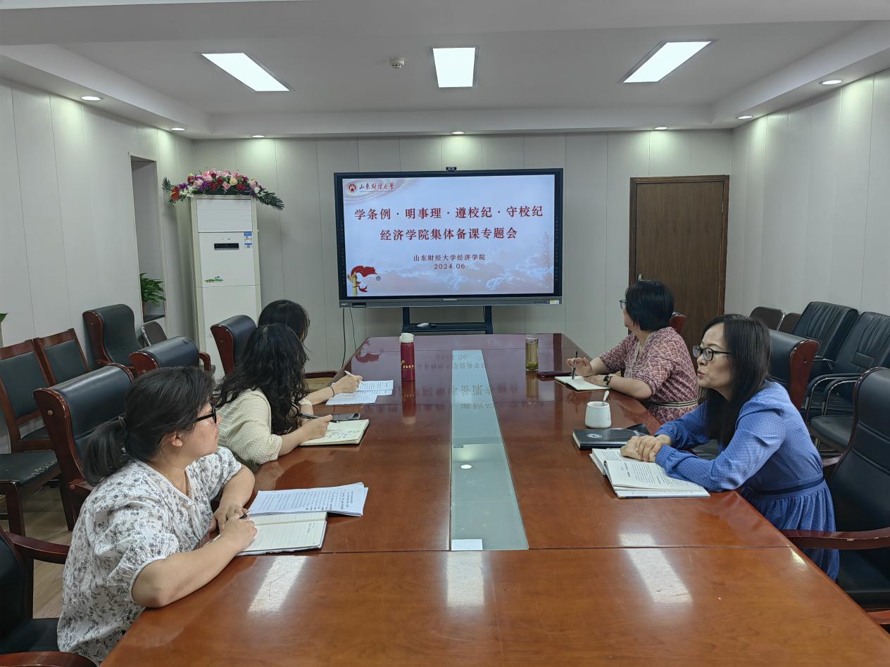 �贯彻落实学校第二次党代会精神,进一步加强学生的纪律教育,创建我院良好学风,根据学校关于开展“学条例·明事理·遵校纪·守校纪”主题教育的通知要求�6�4日,经济学院召开“学条例·明事理·遵校纪·守校纪”集体备课专题会,经济学院党委副书记李冰封、陈静和全体辅导员参加会议,会议由李冰封主持�
