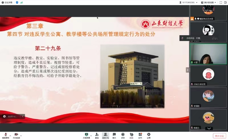 涓婚鏁欒偛鐝細�笂锛屽悇鐝緟瀵煎憳甯﹂鍚屽浠郴缁熷涔犮婂北涓滆储缁忓ぇ瀛﹀鐢熻繚绾鍒嗘潯渚嬨嬶紝璇︾粏浠嬬粛鎬诲垯銆佸鍒嗙殑绉嶇被涓庨傜敤鑼冨洿銆佽繚绾涓轰笌澶勫垎銆佸鍒嗘潈闄愬拰绋嬪簭浠ュ強闄勫垯浜旈儴鍒嗙殑鍐呭锛岄噸鐐瑰杩濈邯琛屼负涓庡鍒嗙殑浜斾釜绔犺妭閫愭潯闃愯堪锛屼粠鍗卞鍥藉瀹夊叏涓庡叕鍏卞畨鍏ㄣ佹壈涔辩ぞ浼氱З搴忔牎鍥З搴忕綉缁滅З搴忚涓恒佷镜鐘汉韬潈鍒╁叕绉佽储浜ц涓恒佸杩濆弽瀛︾敓鍏瘬鏁欏妤肩瓑鍏叡鍦烘墍绠$悊瑙勫畾琛屼负鍜屽杩濆弽瀛︿範銆佸鏈佽冭瘯绾緥琛屼负杩涜閫愭潯瀛︿範閲嶇偣瑙h锛岀粨鍚堢浉鍏冲吀鍨嬫渚嬶紝缁欏悓瀛︿滑寮鸿皟浜嗙淮鎶ゆ牎鍥З搴忋佺綉缁滅З搴忋佸叕瀵撴秷闃插畨鍏ㄣ佷汉韬储浜у畨鍏ㄧ殑閲嶈鎬т互鍙婃敞鎰忎簨椤广備复杩戞湡鏈冭瘯锛岃緟瀵煎憳閲嶇偣寮鸿皟浜嗐婂北涓滆储缁忓ぇ瀛﹀鐢熻繚绾鍒嗘潯渚嬨嬩腑鐨勮冭瘯杩濈邯琛屼负锛屽槺鍜愬悓瀛︿滑绔鑰冭瘯鎬佸害锛屼弗鏍奸伒瀹堝悇椤硅冭瘯绾緥锛屽悓鏃跺紩瀵煎悓瀛︿滑鍚堢悊瑙勫垝鏈熸湯澶嶄範锛岄潬鑷繁鐨勫姫鍔涘彇寰椾紭寮傛垚缁┿�
