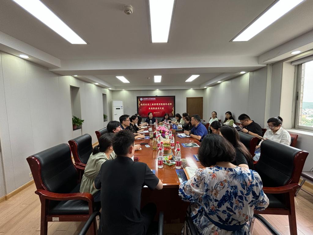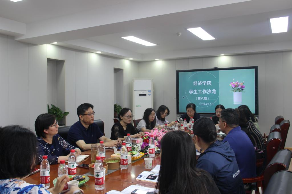 2024�7�4日,工商管理学院党委书记赵世民一行十余人�我院座谈交流,同时举办经济学院第八期学生工作沙龙,学院全体学工队伍参加。座谈由经济学院党委书记姜伟主持�